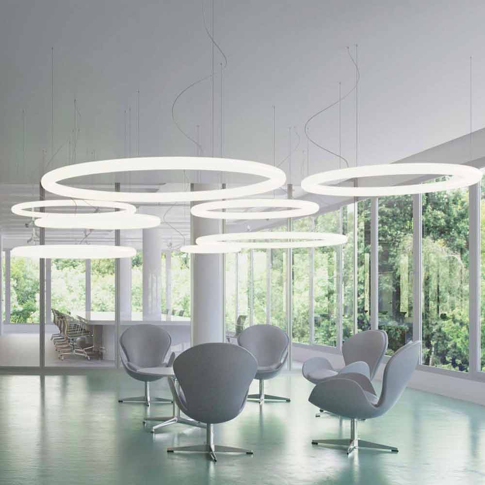 The design of this modern piece of furniture is perfectly described by its name, Giotto. In fact, its shape is a perfect circle characterized by an essential geometry but with a great visual impact enriched by the LED which, thanks to a homogeneous and welcoming light , creates perfect lighting effects for both contract spaces and private environments. Thanks to the possibility of adjusting the height of the product, it is possible to use it individually for a more discreet but always original solution, or even by combining the different sizes available to create wonderful personalized compositions thus giving life to unique and original plays of light inside the room.