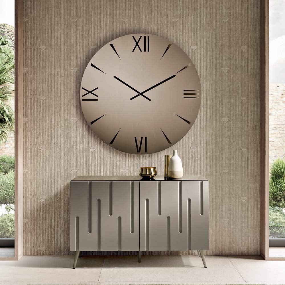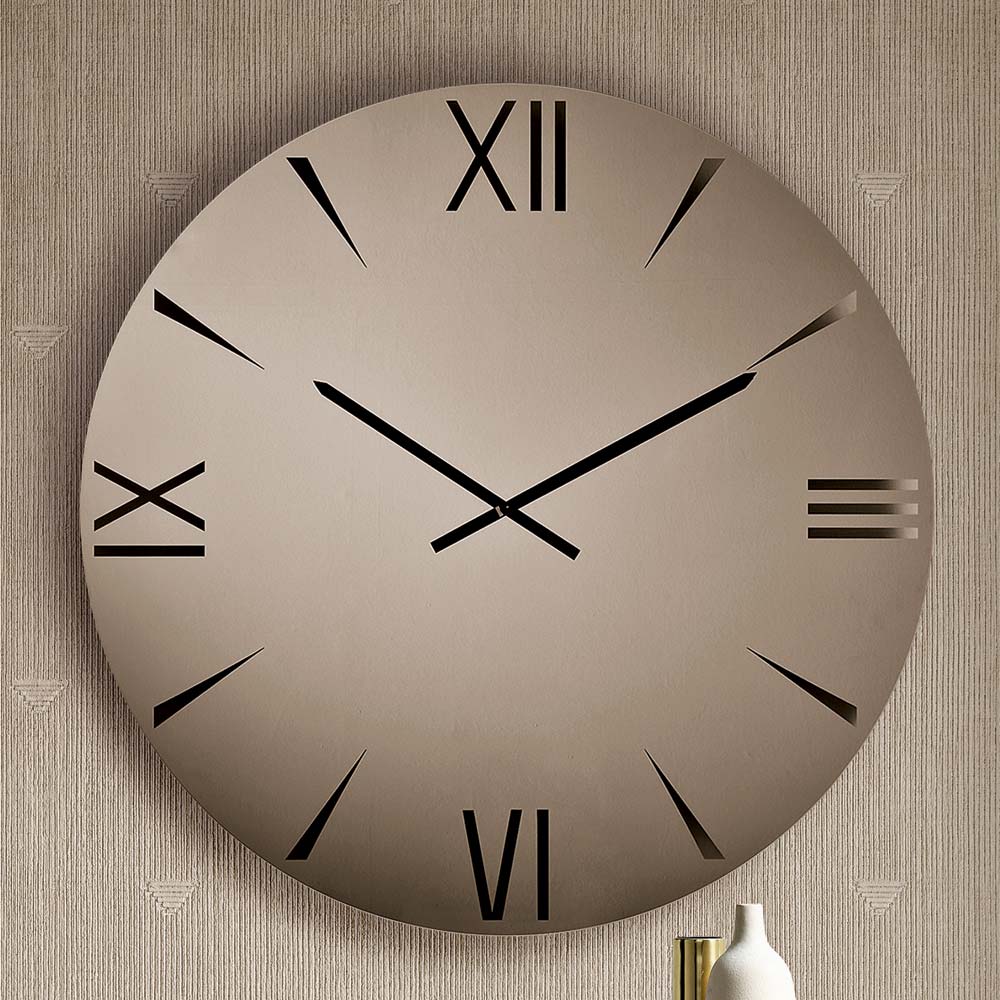 An elegant , Made in Italy designer wall clock , ideal for enhancing spaces like the living room , entryway , or dining area . Its contemporary style transforms the function of time into a decorative element capable of enriching the wall with elegance and personality.