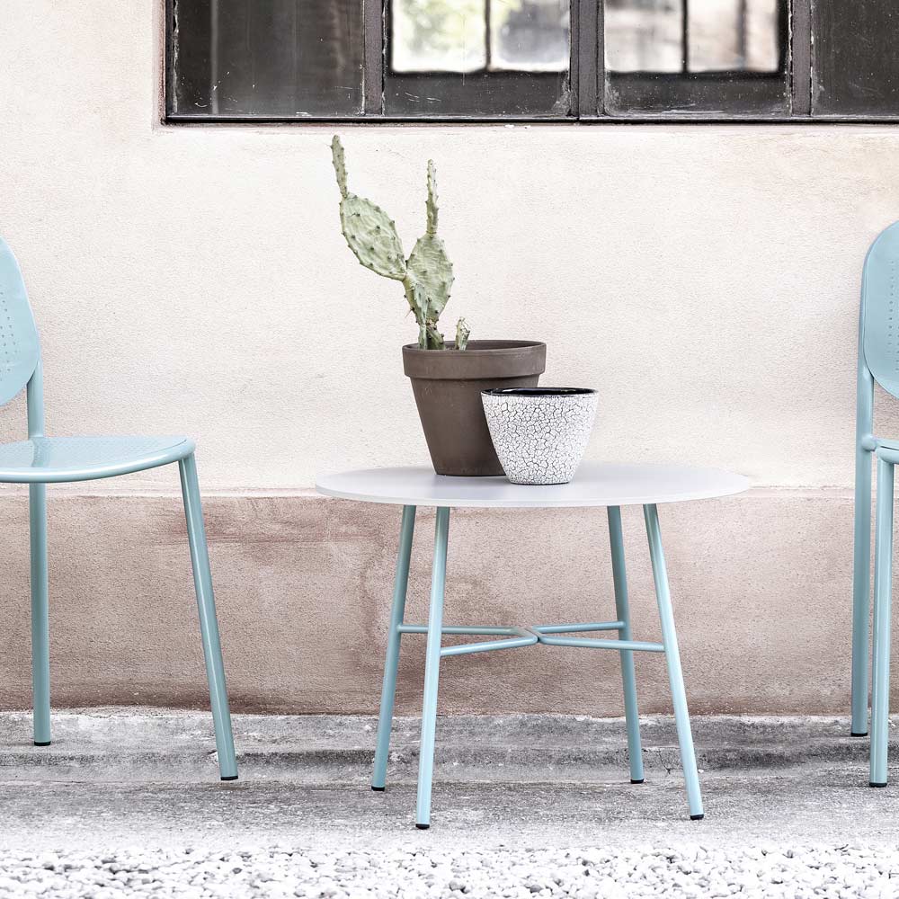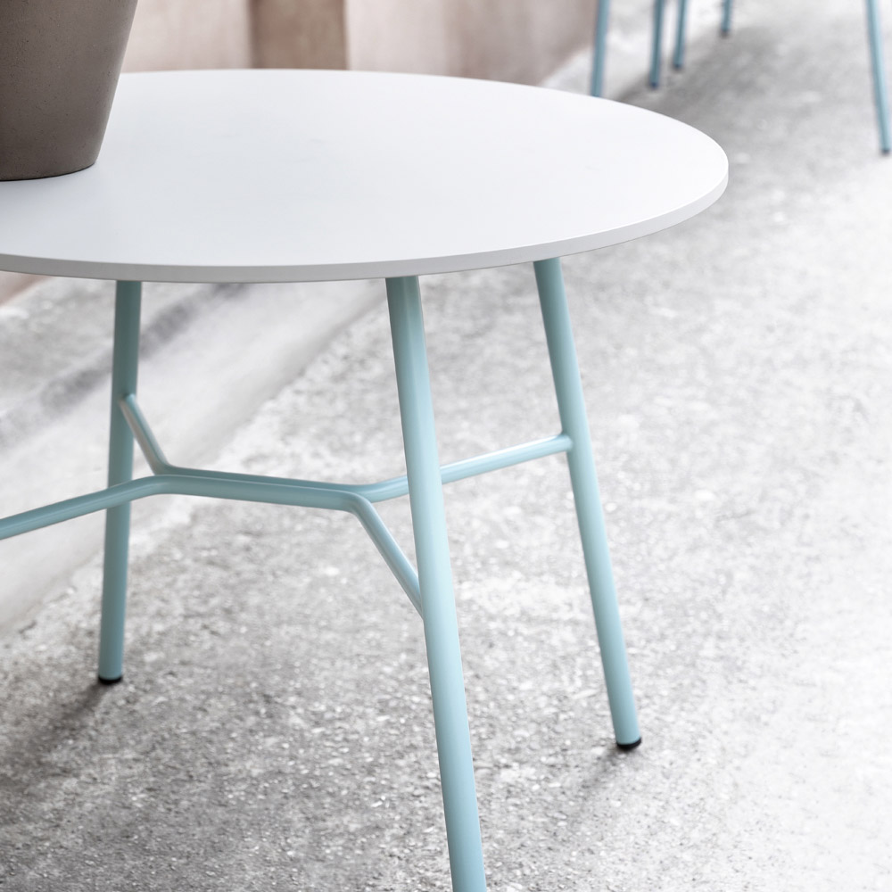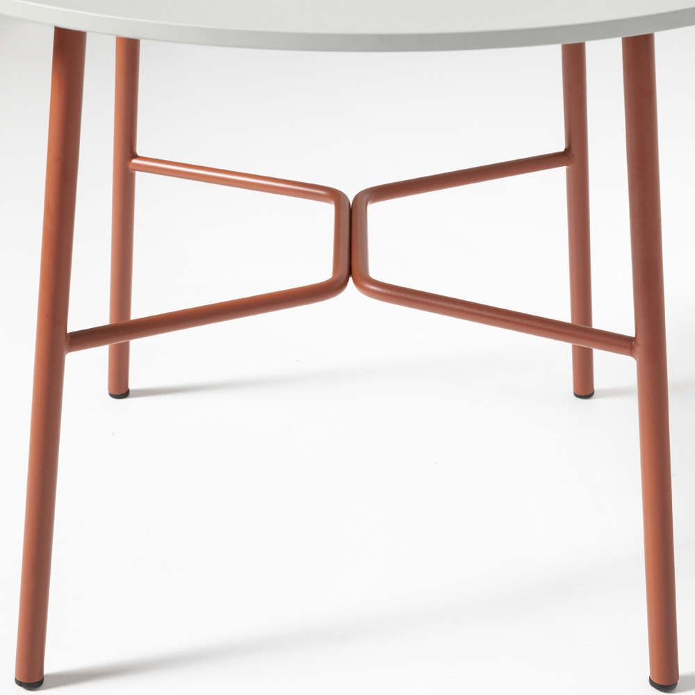 Round outdoor coffee table in HPL and painted metal Made in Italy.
