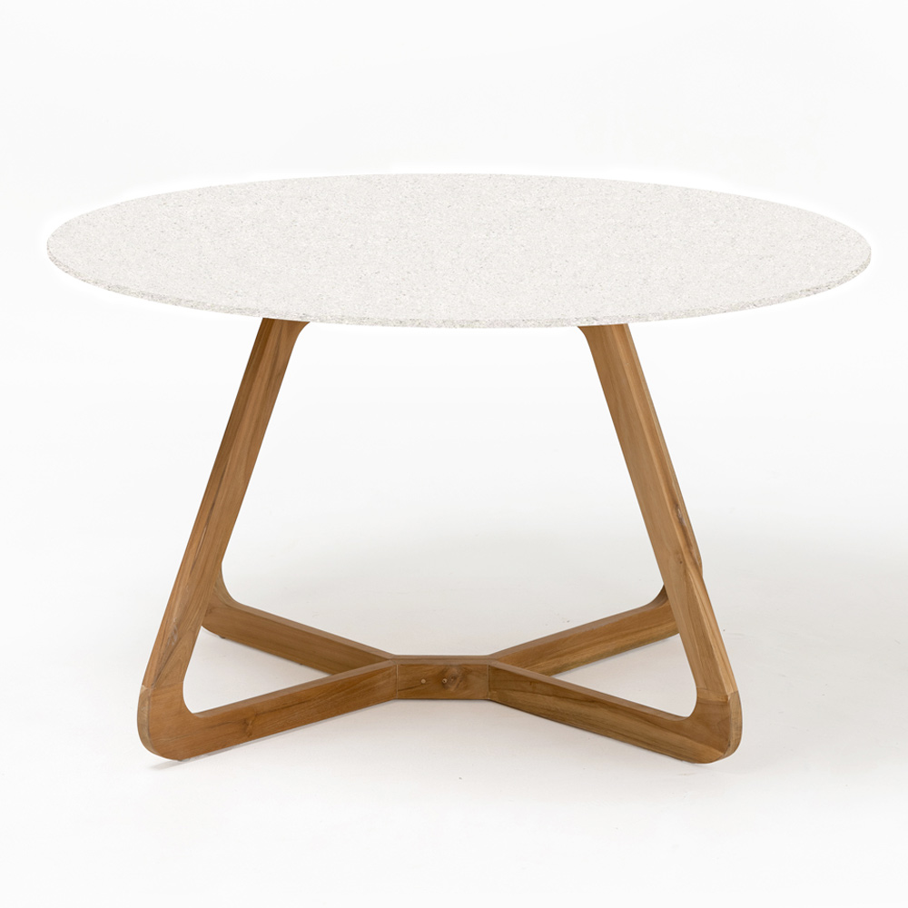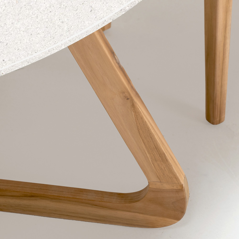 The wooden base blends harmoniously with the modern ceramic top, offering a combination of natural warmth and modern design. This composition is not only aesthetically pleasing but also guarantees stability and durability thanks to the high-quality materials chosen to withstand outdoor elements.