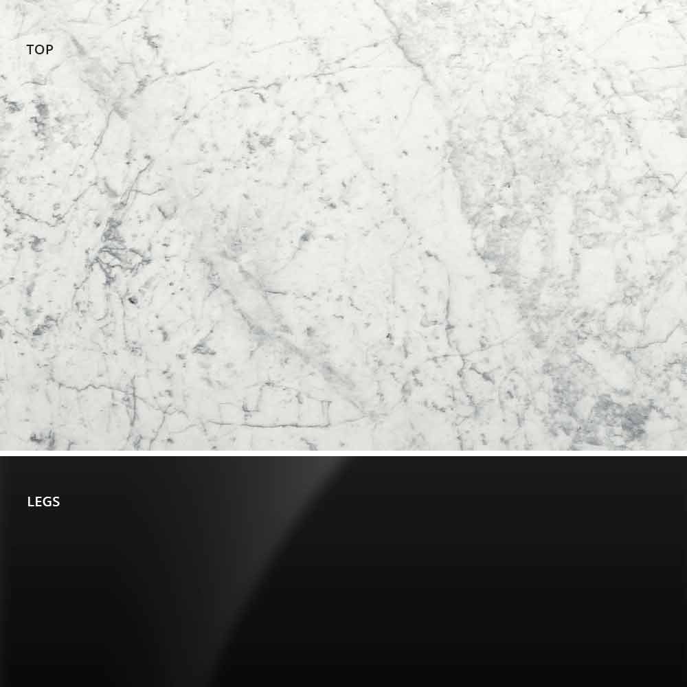 Modern round table with Carrara or Nero Marquinia marble top handcrafted in Italy.