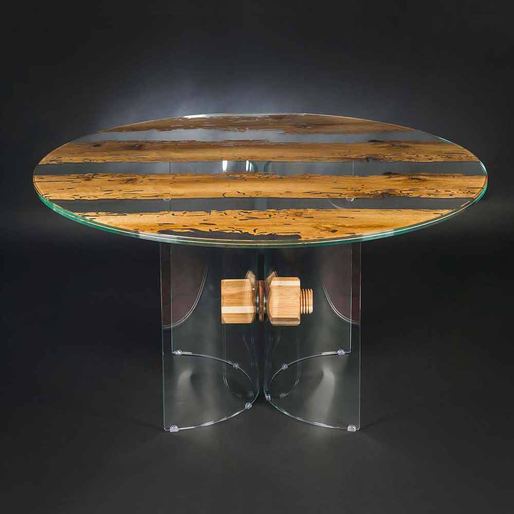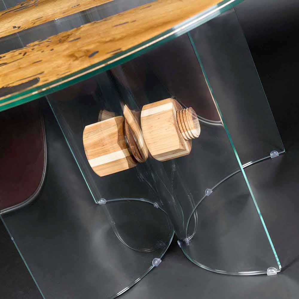 Round table Venezia, made of Venice briccola wood and glass, modern design.