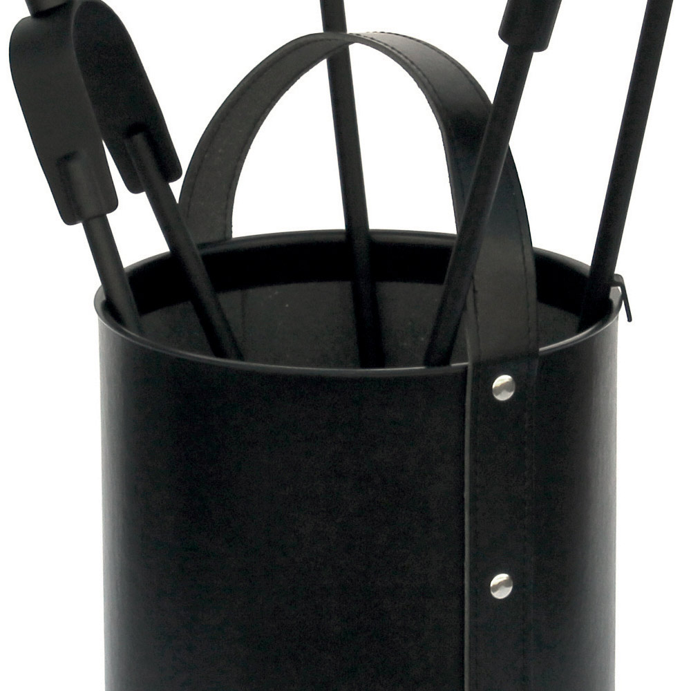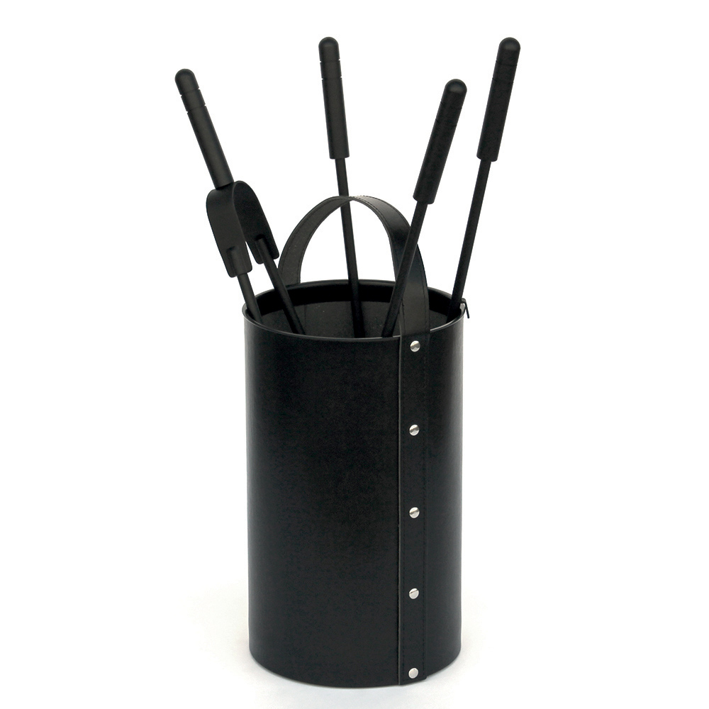 This cylindrical design tool holder is an elegant and practical addition for fireplace management and maintenance . The container not only helps keep the fireplace area tidy, but also serves as a design piece that adds a rustic and welcoming touch to the space.