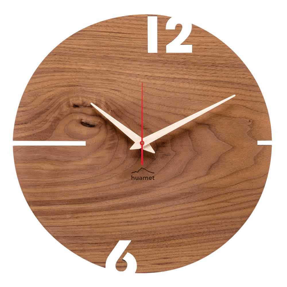 Modern design round wall clock in oak, pine or walnut; handcrafted in Italy.
