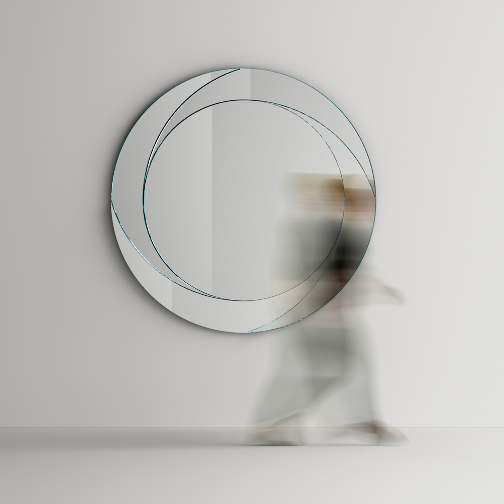 game of perspectives capable of making the image reflected on the central mirror dynamic. Its simple but impactful aesthetic is ideal for completing the walls of any area of the house, from the entrance to the lounge to the bedroom, while at the same time helping to optically enlarge the spaces for a larger and brighter environment.