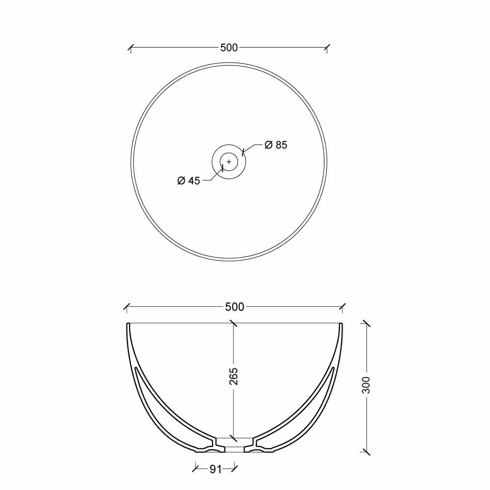 Round countertop washbasin in white or colored ceramic Star Round50, made in Italy