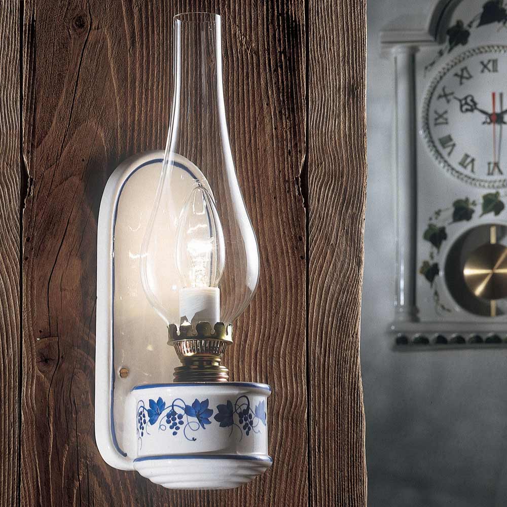 Rustic wall sconce made of hand-decorated ceramic by Ferroluce