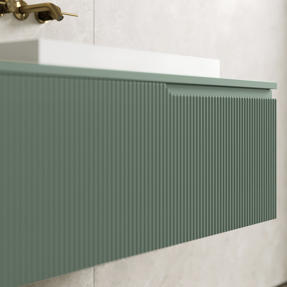 base with 1 drawer in MDF with ribbed sage green finish, a matt white resin