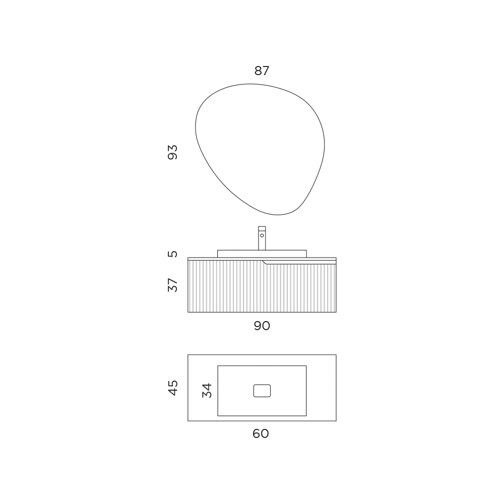 - Washbasin: Length 60 x Depth 34 x Height 15.7 cm
