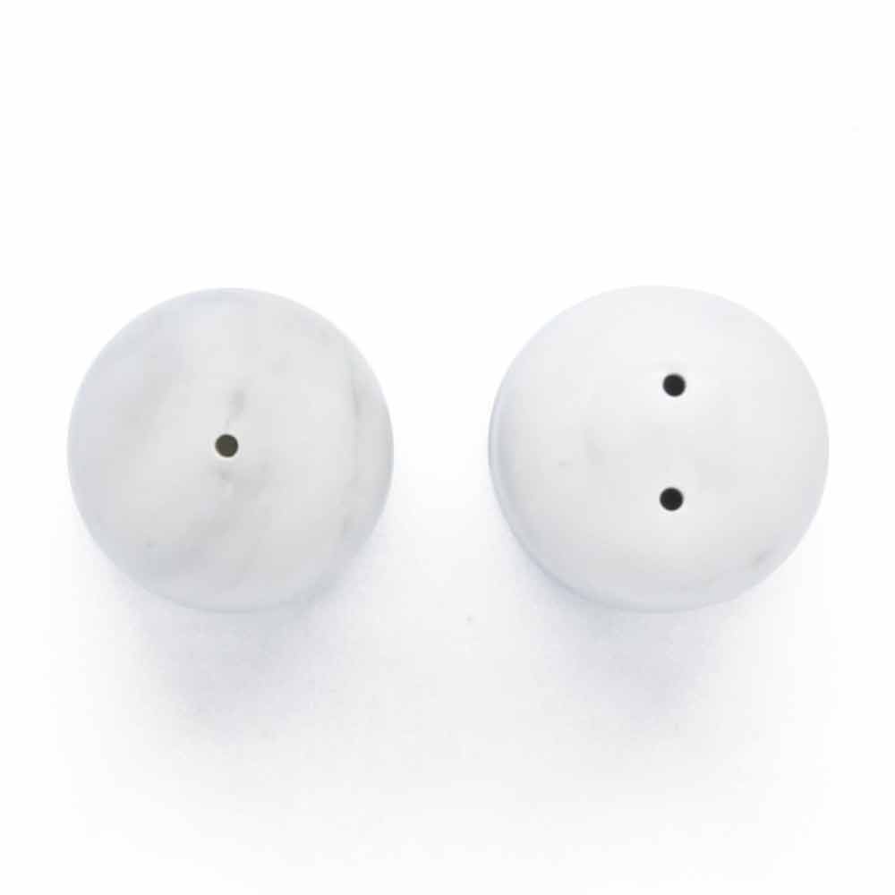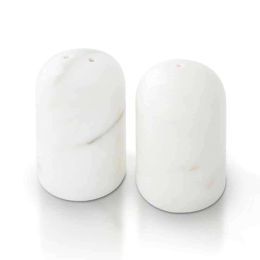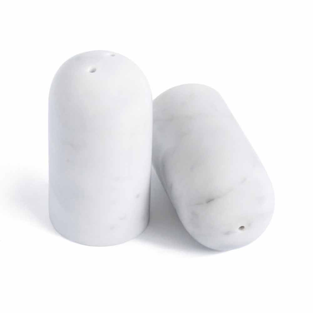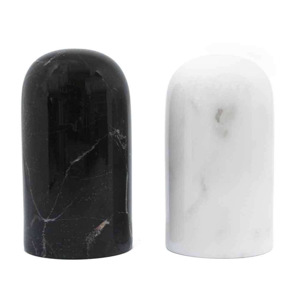 Kitchen containers for salt and pepper in white Carrara marble and black Marquinia Made in Italy.