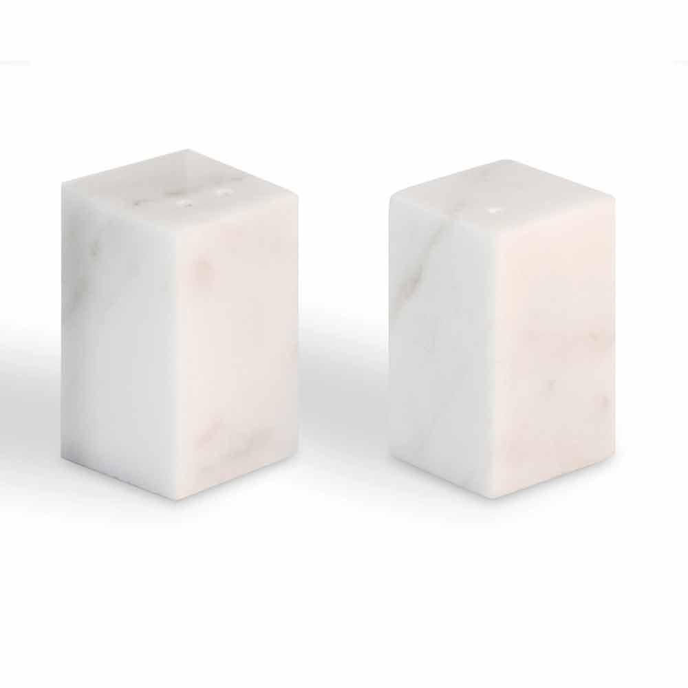 Kitchen containers for salt and pepper characterized by the use of white Carrara marble and are to be considered unique pieces as each block of marble used differs from the others for veins and shades.