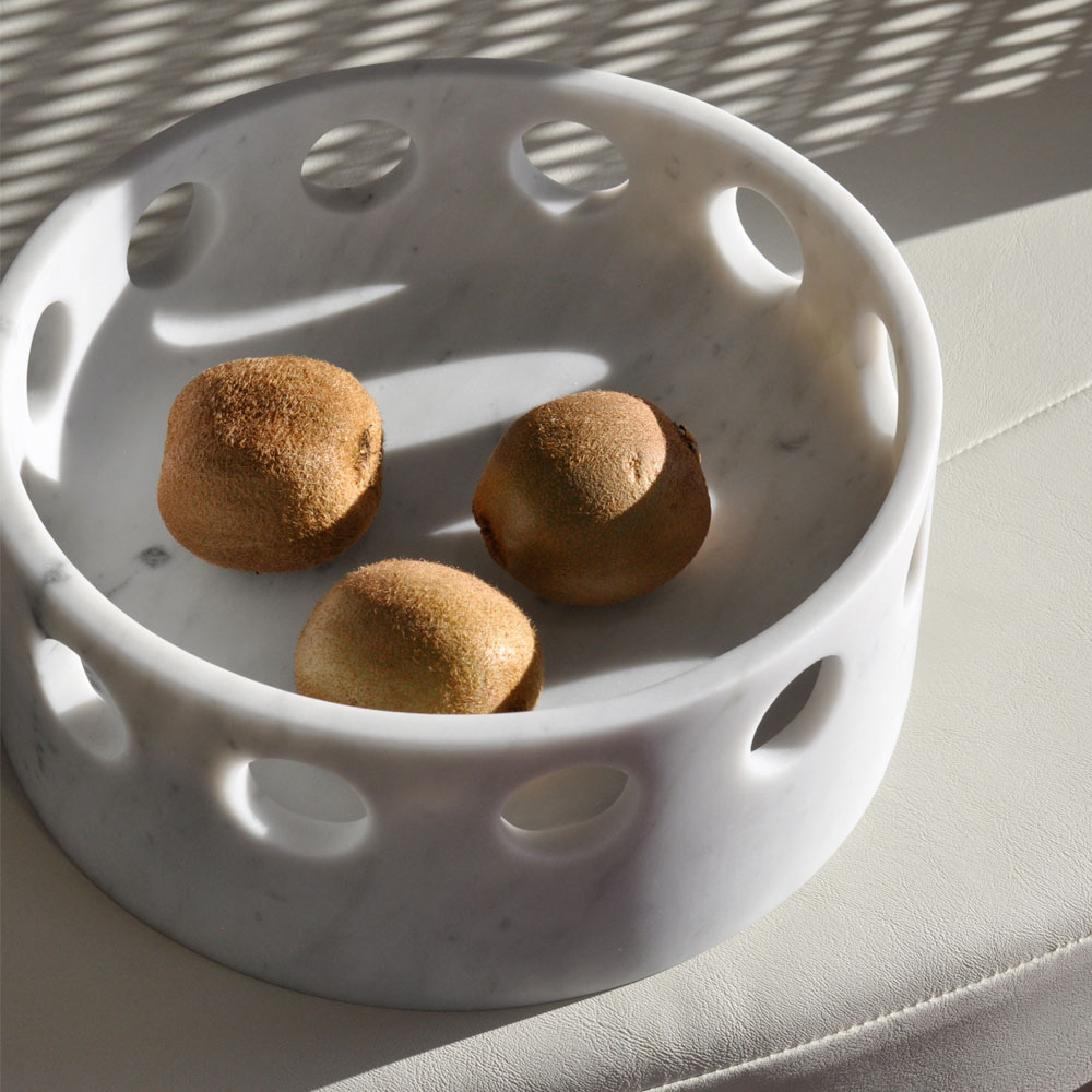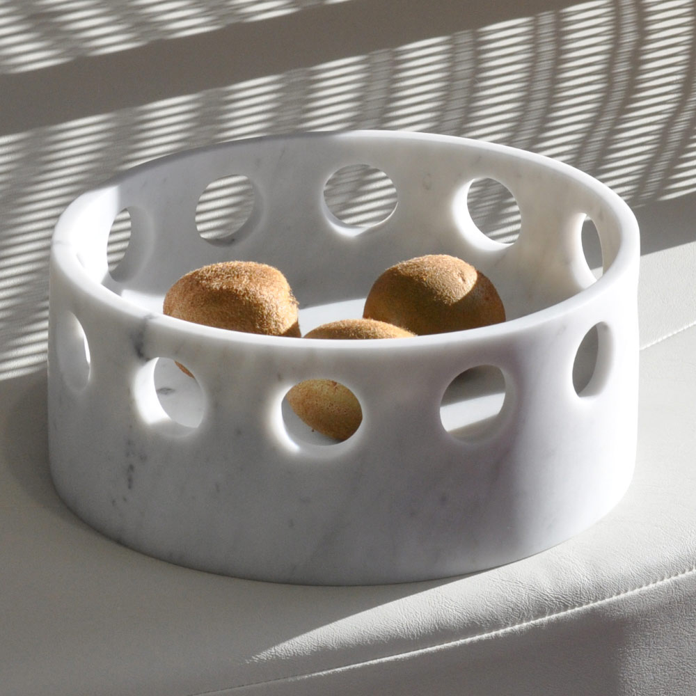 Bring a touch of refined elegance to your home with this marble centerpiece/pocket tray. The round design and symmetrical perforations make it a unique and stylish piece, perfect for easily enriching any table or console. The quality of marble, a durable and noble material, celebrates the best of Italian craftsmanship .