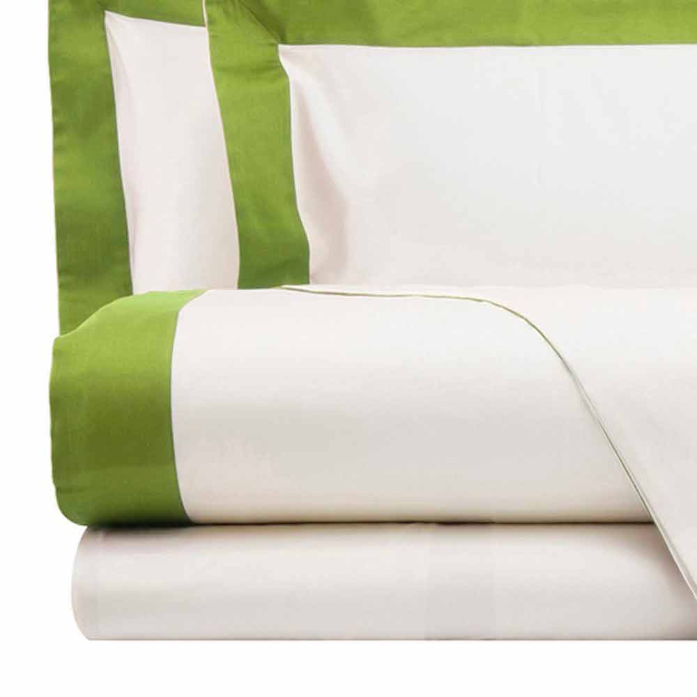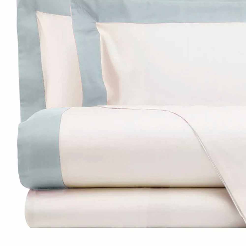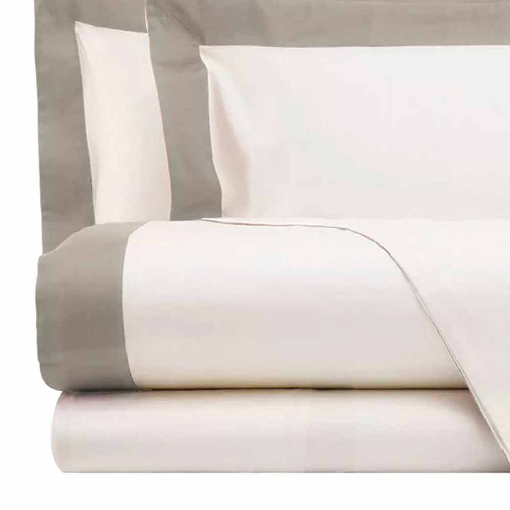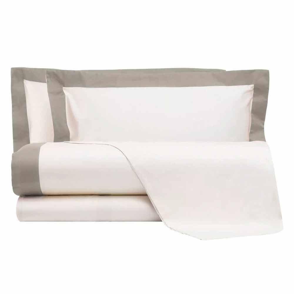 Complete with ivory sheets with contrasting border of different colours for double bed in satin 200 TC made in Italy.