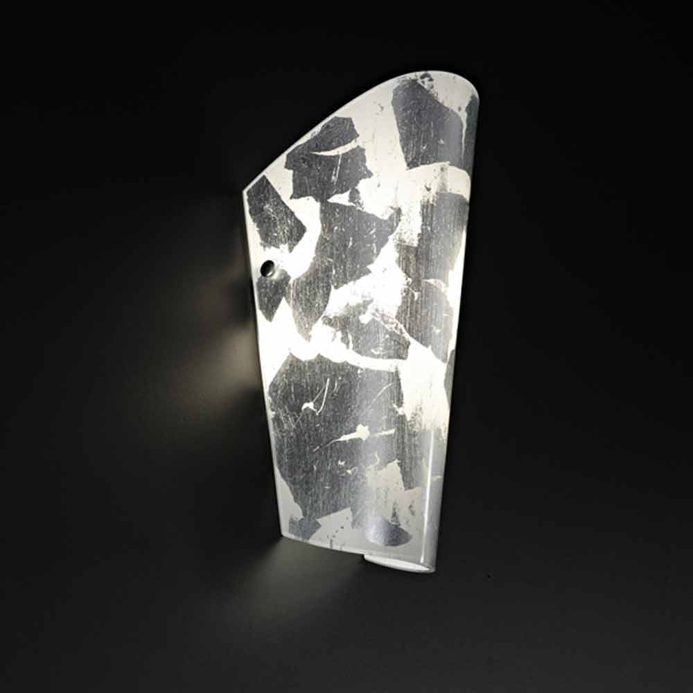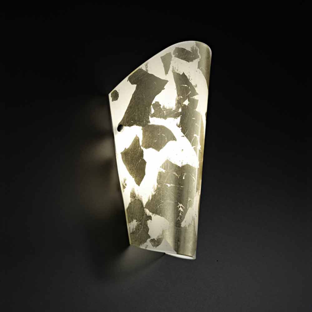 Versatile glass wall lamp with limited overall dimensions and countless variations of colour, available also with gold or silver decoration.