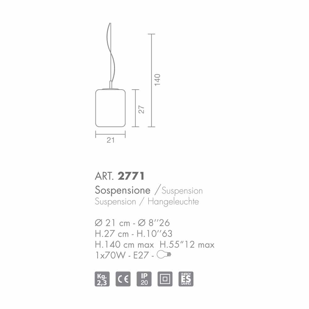 Rich collection of blown glass lamps with a specialised honeycomb relief manufacture that adorns the glass itself. The glass shade can be cylindrical in two sizes and also in a spherical one. Moreover, it is available in three satin colours: white, amber and smoked.