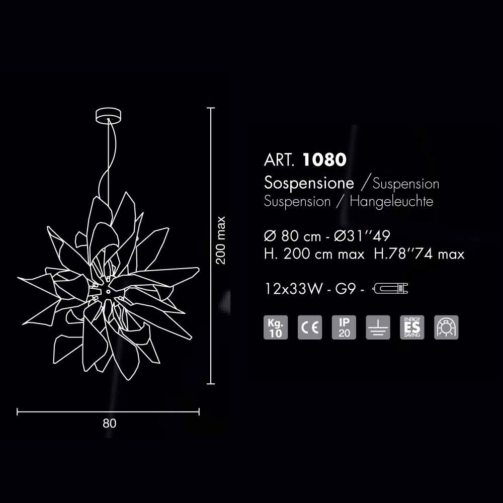 Selene Ginger metal pendant lamp, made in Italy, Ø80 H200cm.