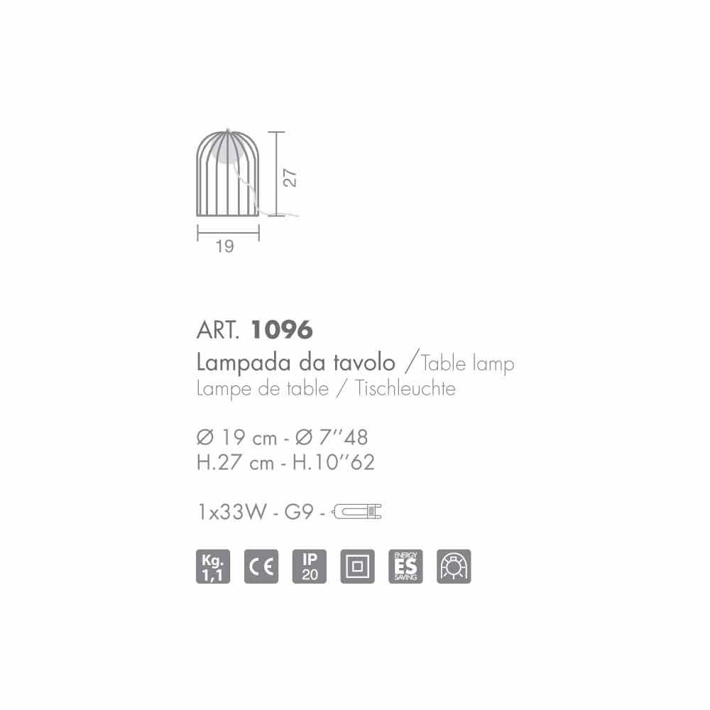 Selene Kluvì cage lamp, made of glass and metal, Ø19 H 27cm.