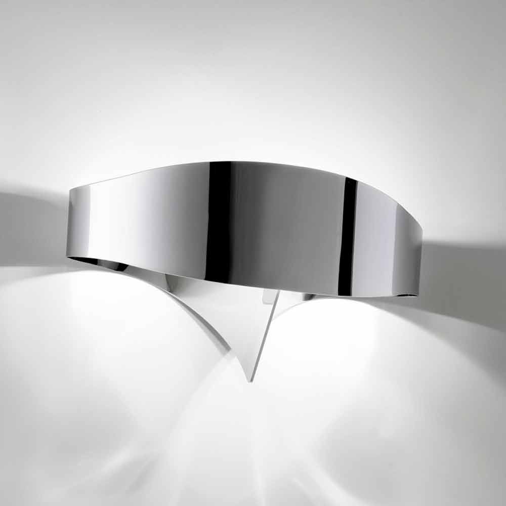 Wall lamp created starting from a laser cut steel stripe bent by hand in order to create an undivided and wraparound element.
