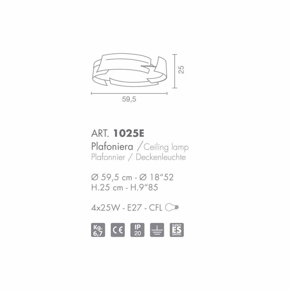 Selene Vultur ceiling light, Ø59,5 H 25cm made in Italy, modern design.