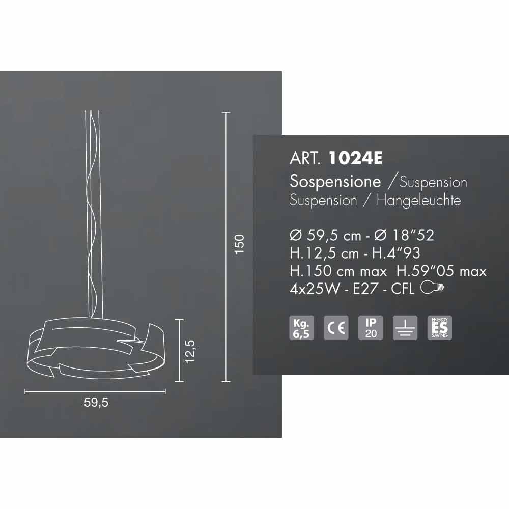 Selene Vultur pendant light, made in Italy, Ø59,5 H 12,5/150 cm.