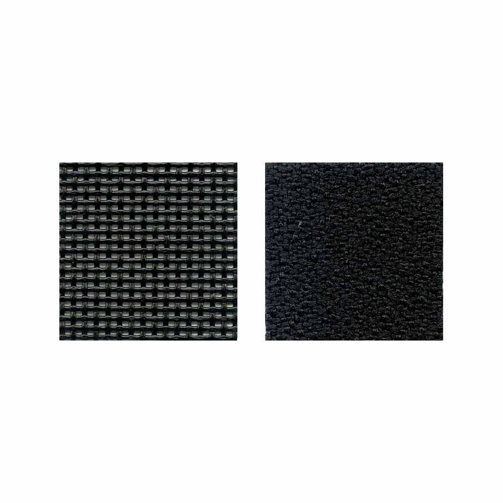 padded seat covered in black fabric and back in black micro-perforated technorete.