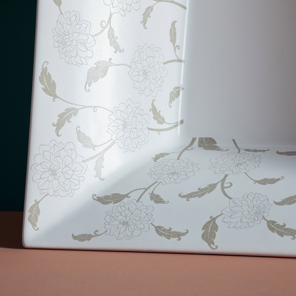 Thanks to the refined palette and the enamelling that embellishes the slightly raised decorations , this product acquires elegance and uniqueness. The classic and rigorous shape enhances the quality of the finishes making this sink perfect for decorating any bathroom.