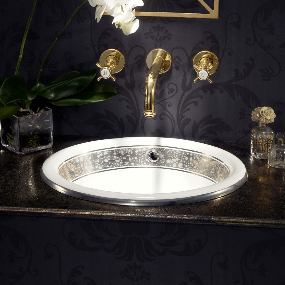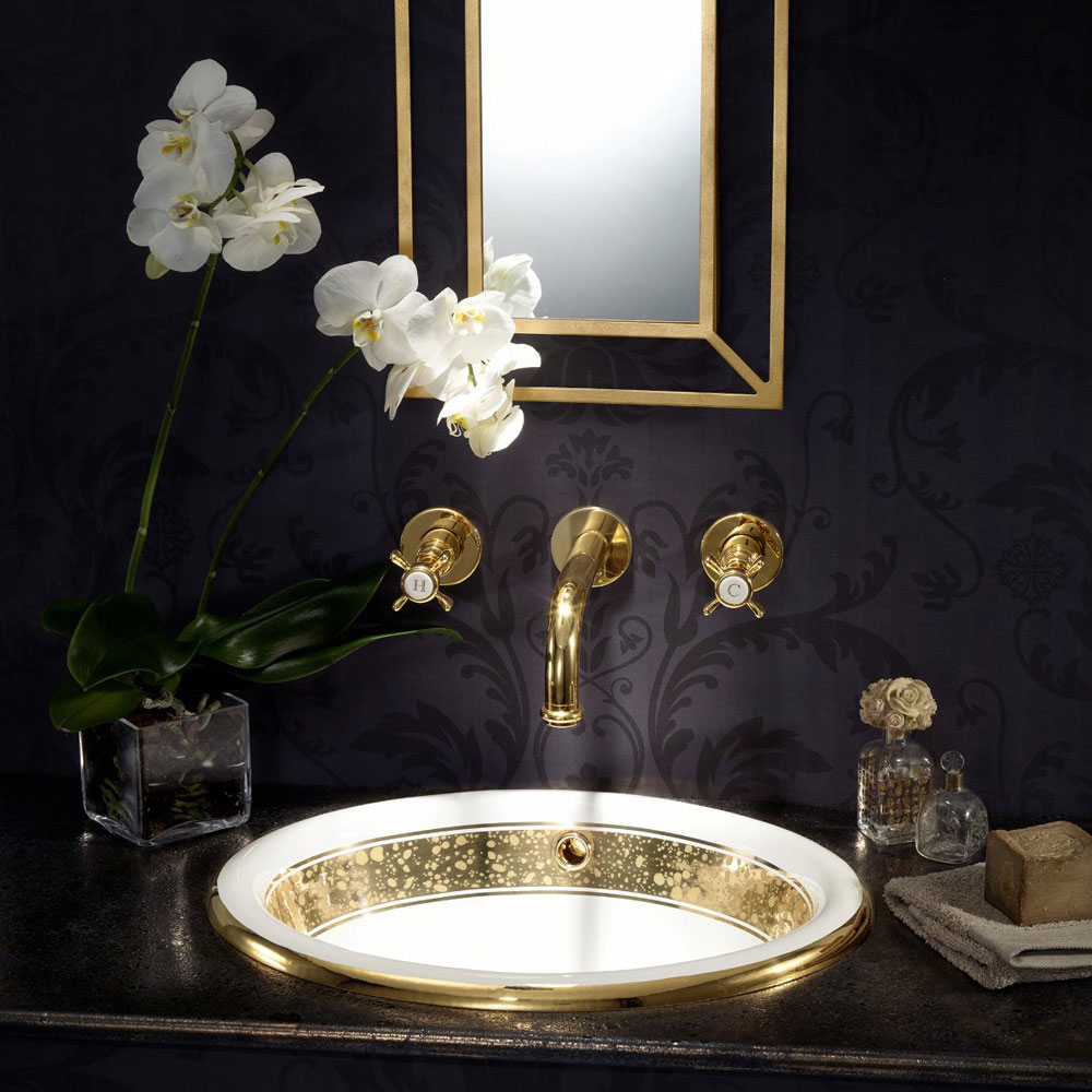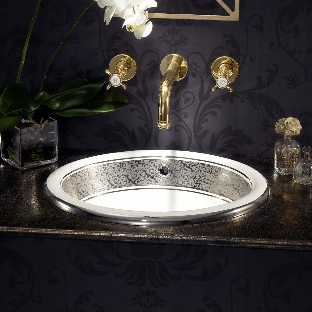 Semi-recessed washbasin in Fire Clay with band in different finishes - Botticino