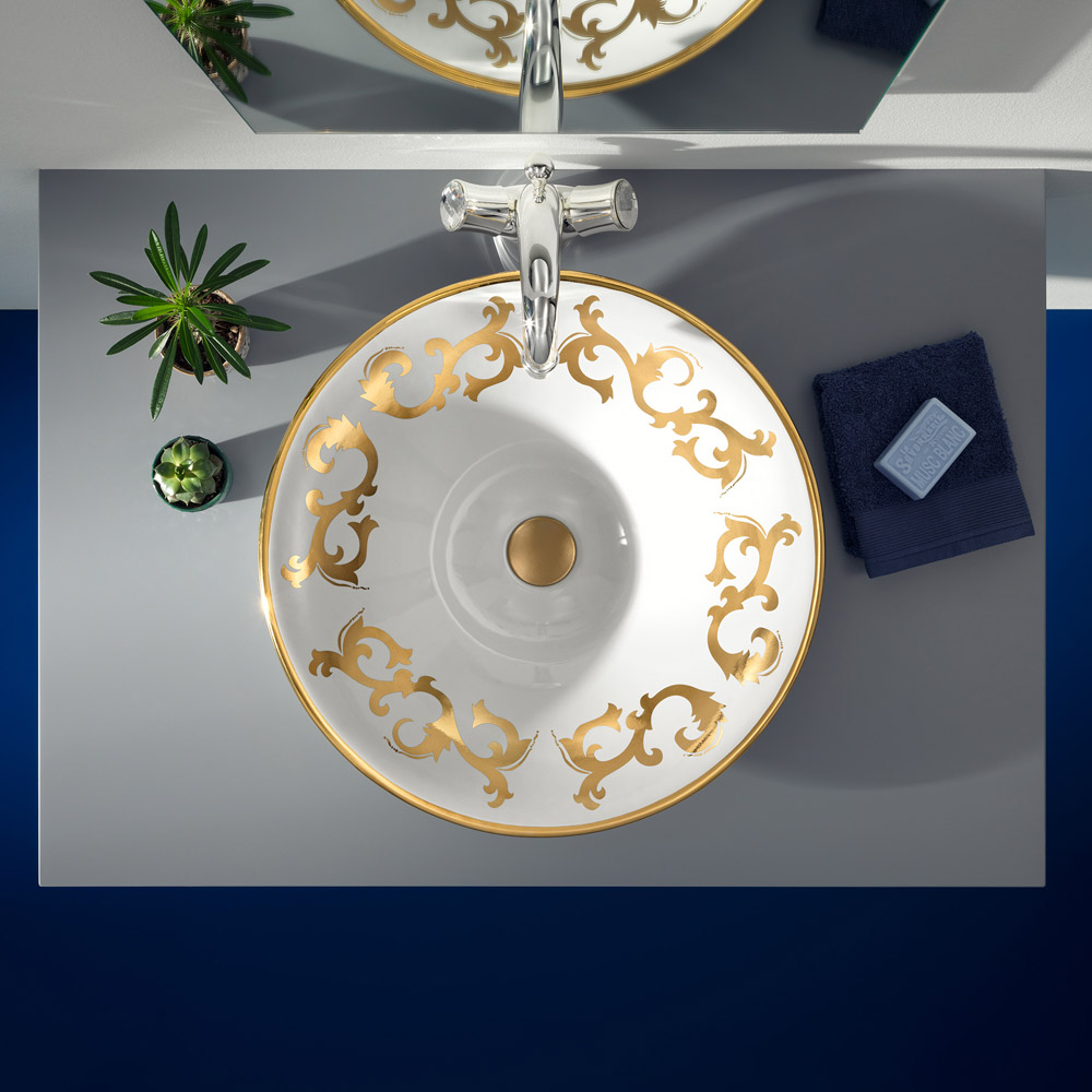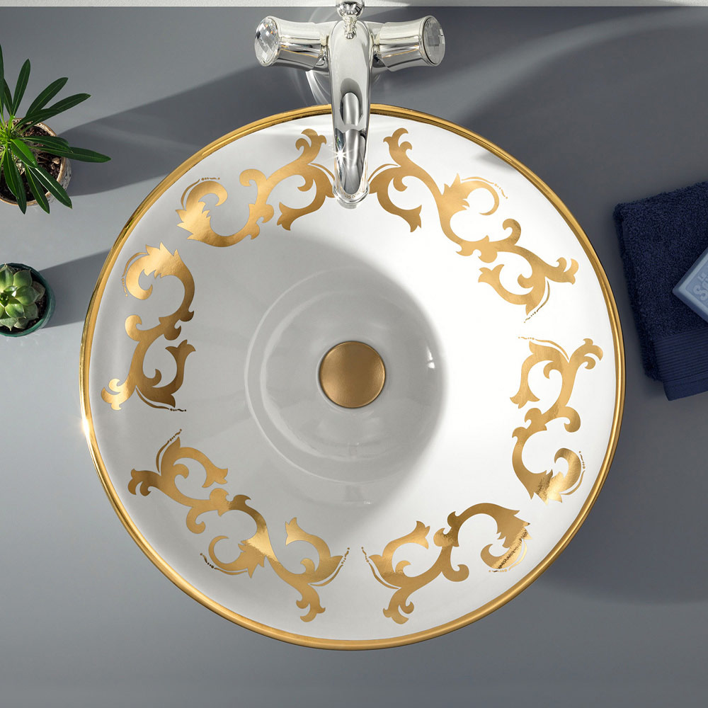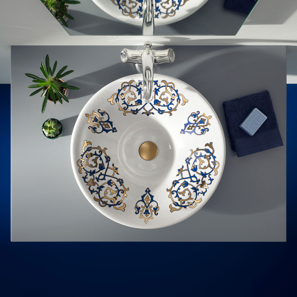 Semi-recessed washbasin with Cobalt Blue and Gold or Gold decorations Made in Italy - Capatosta