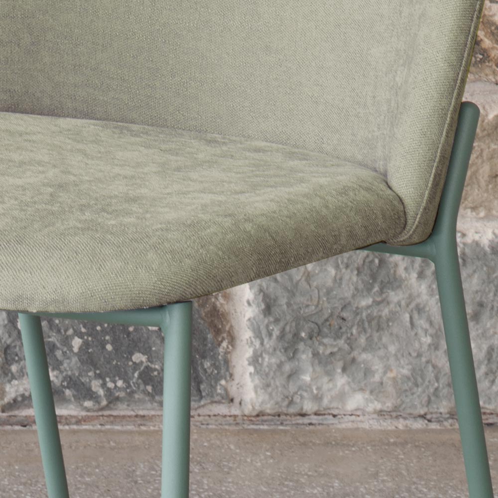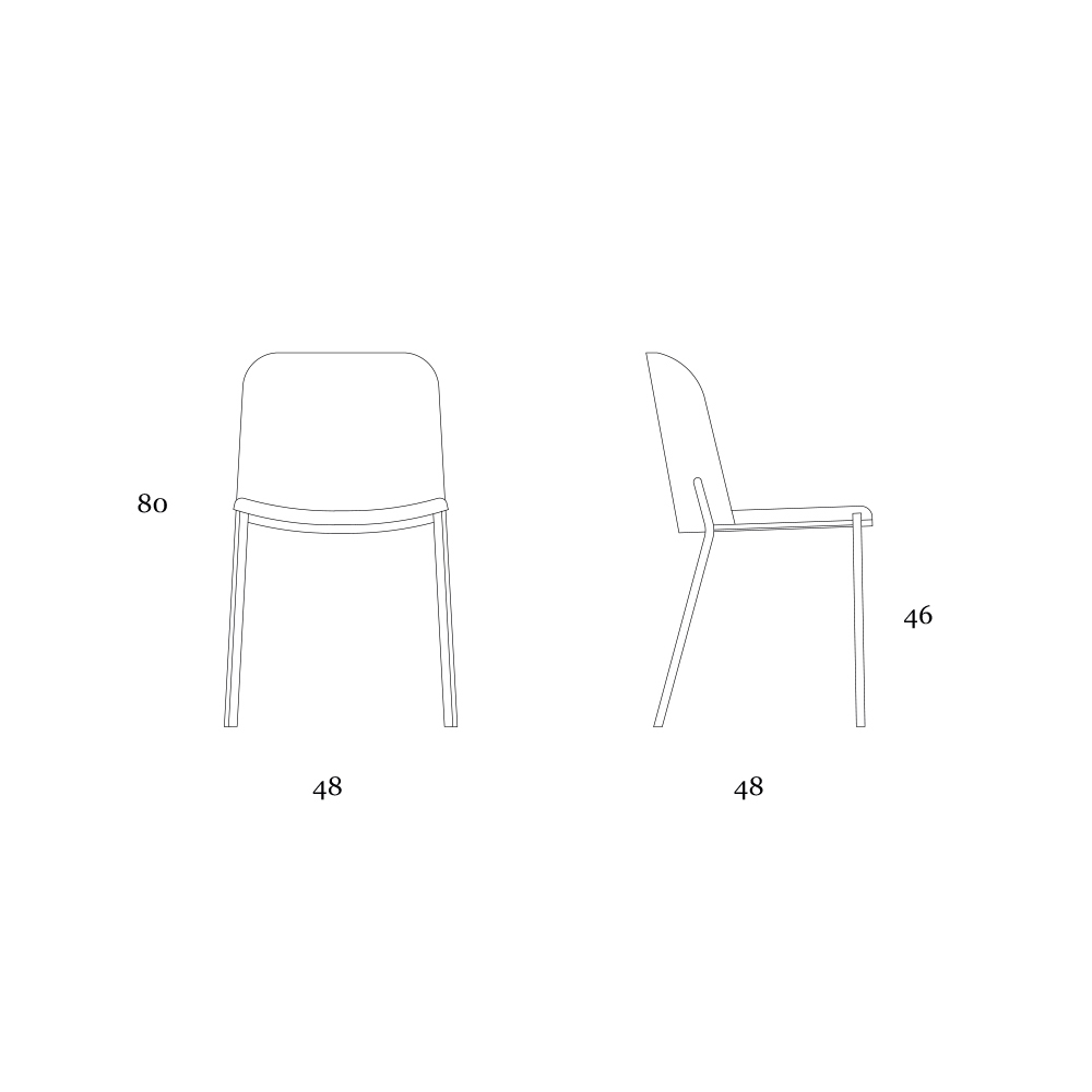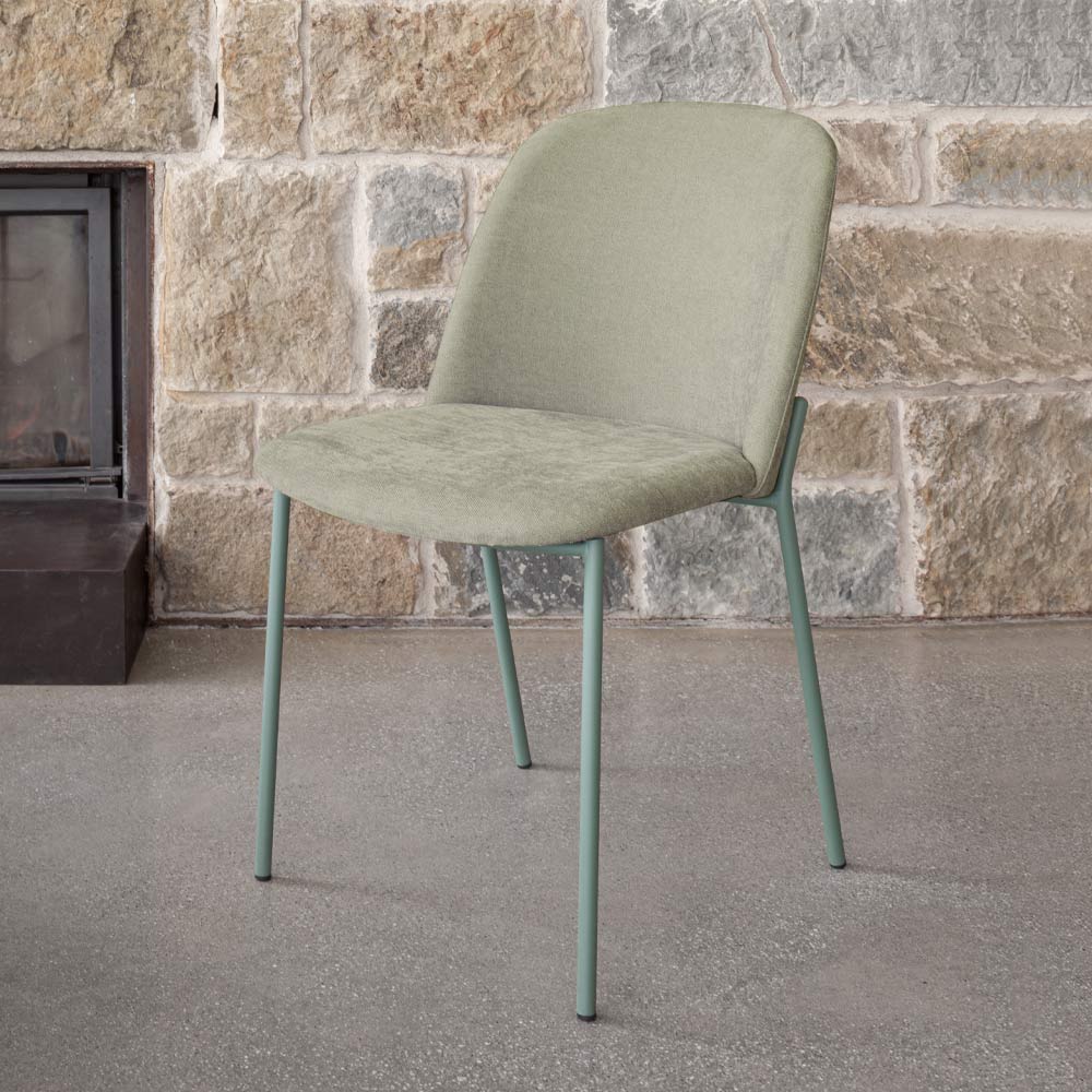 Chairs with a modern design, defined by soft queues that guarantee comfort and versatility. They are characterized by a covering available in different colours and materials, which allow them to adapt to different furnishing styles. The powder-coated metal legs support an upholstered body, with matching stitching that contributes to the clean and elegant design of the product. This collection is ideal for those looking for furnishing elements with a contemporary design that do not compromise comfort.