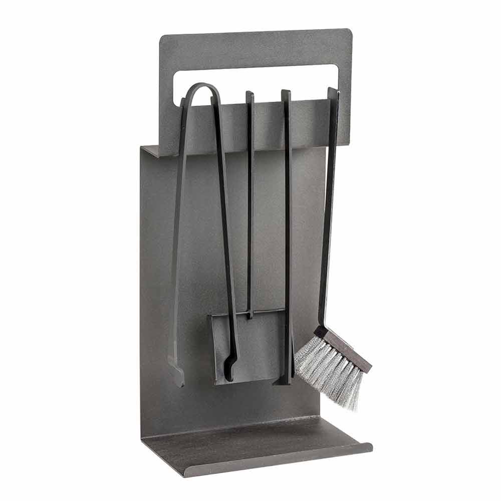 tool holder for fireplace is an indispensable complement to be placed alongside the log holder as it is equipped with four different types of tools useful for maintaining the fire and cleaning the fireplace.