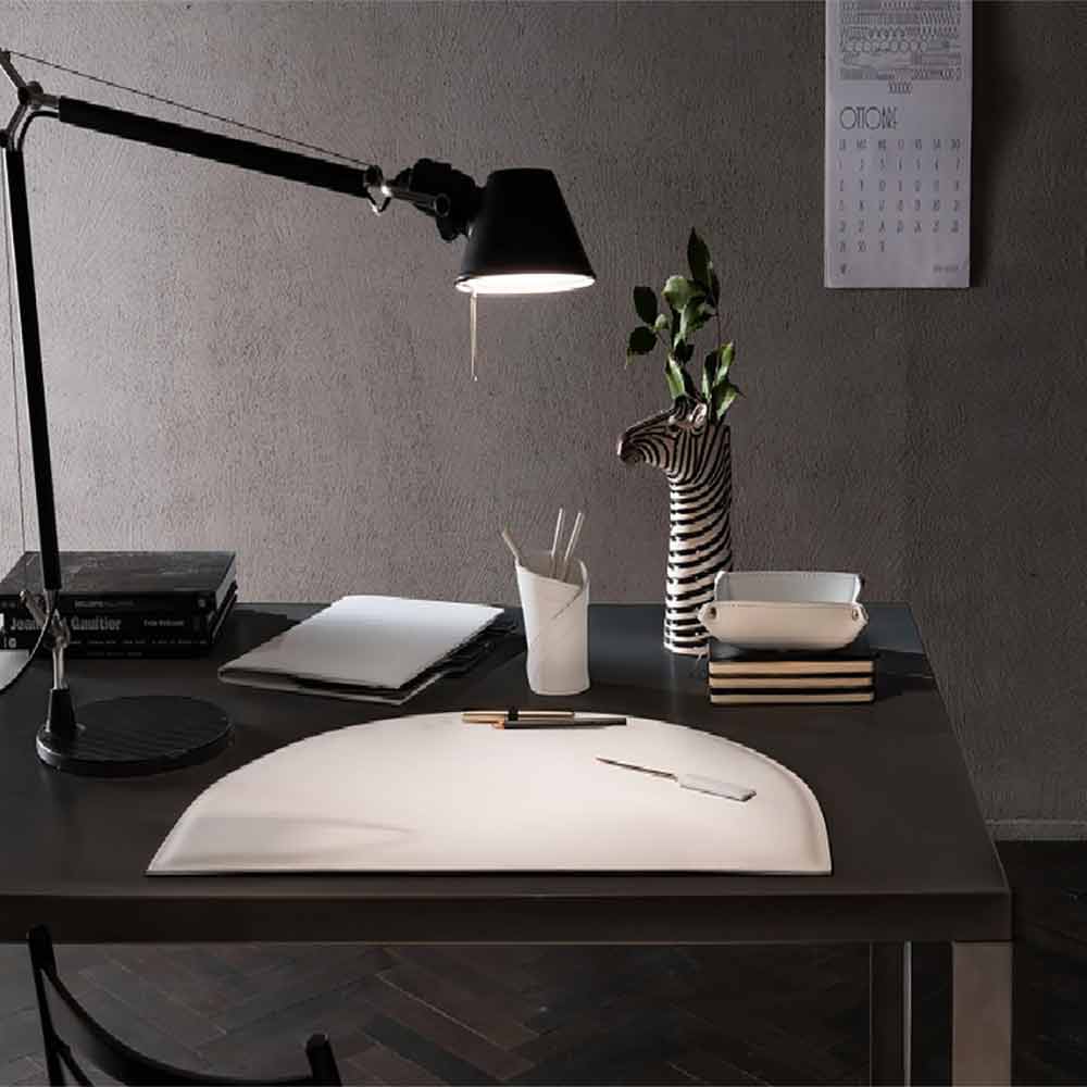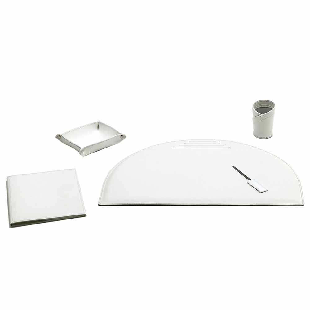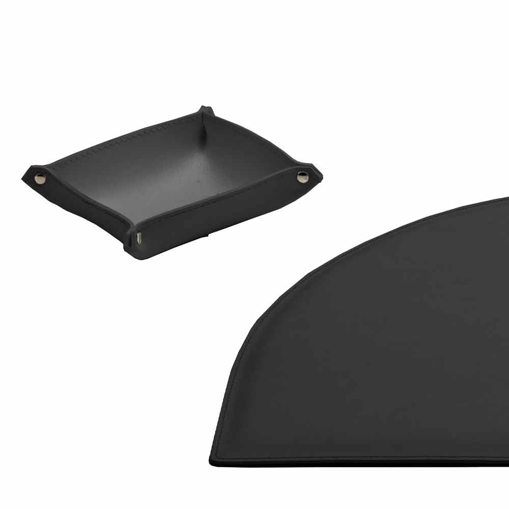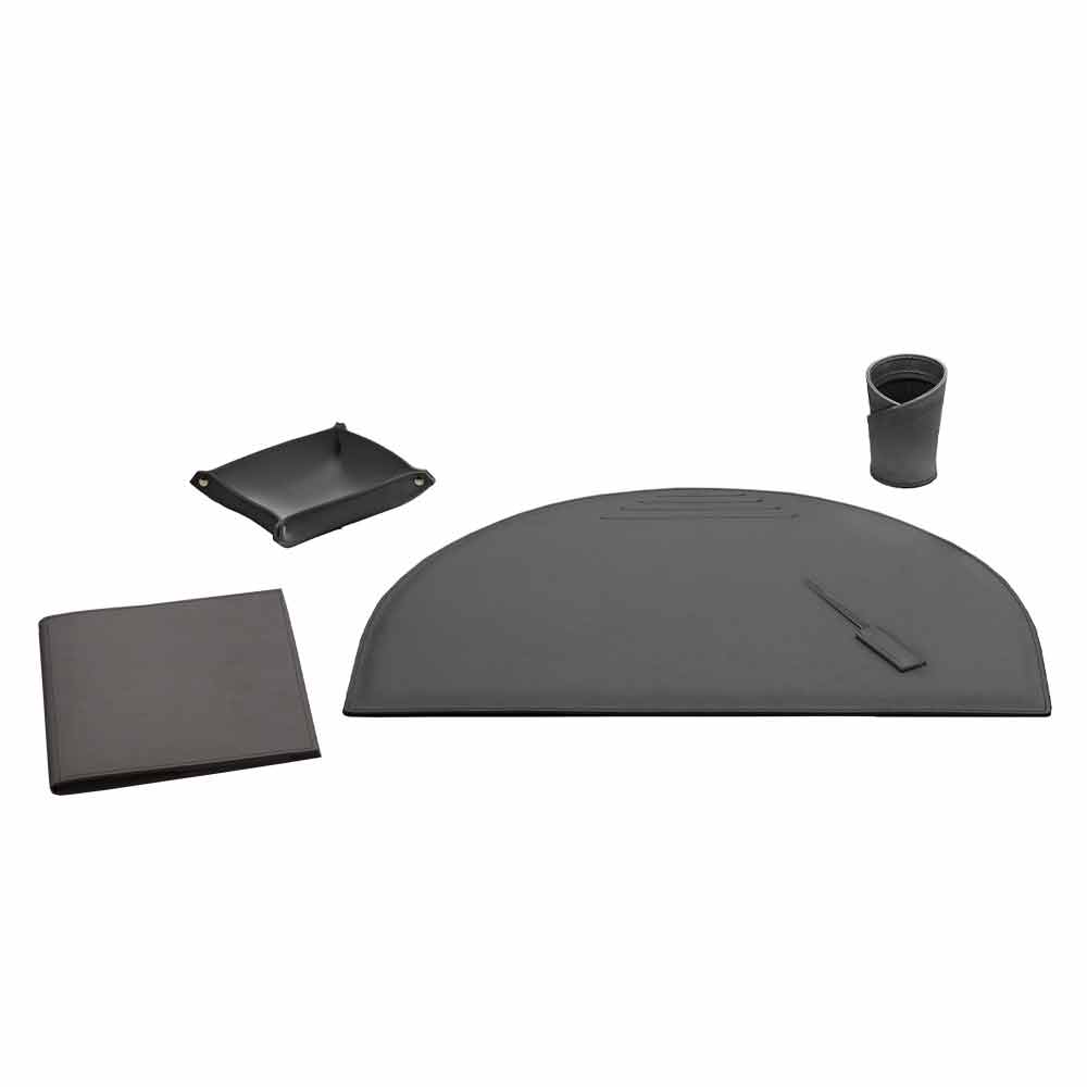 Desk accessories in regenerated leather, modern design, 5 pieces, Made in Italy Medea