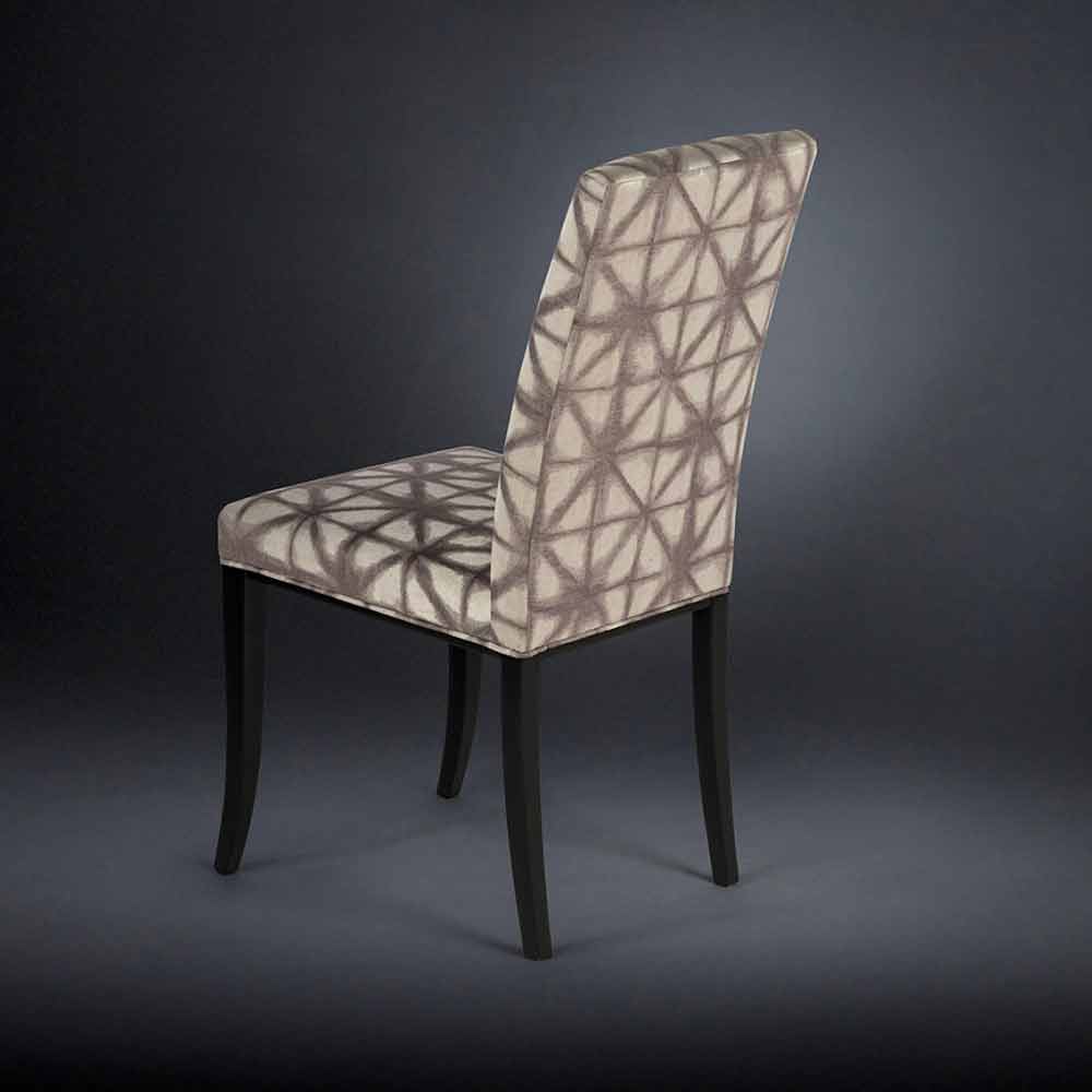 Set of two modern chairs Audrey with black frame, high density polyurethane foam padding and elastic belts seat. Audrey is coated with the fabric Taupe cat. A. Made in Italy.