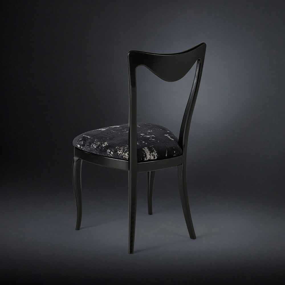 Set of two modern chairs Frida with black frame, high density polyurethane foam padding and elastic belts seat. Frida is coated with the back fabric cat. A. Made in Italy.