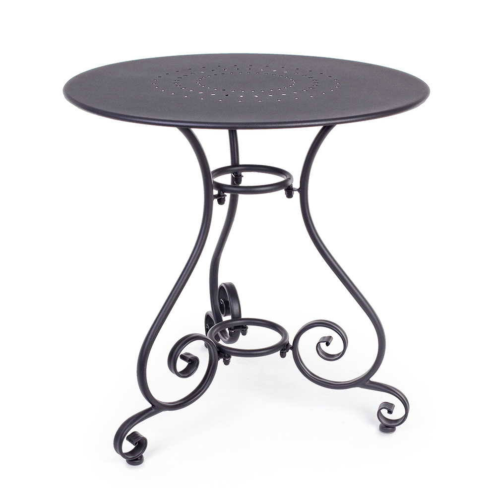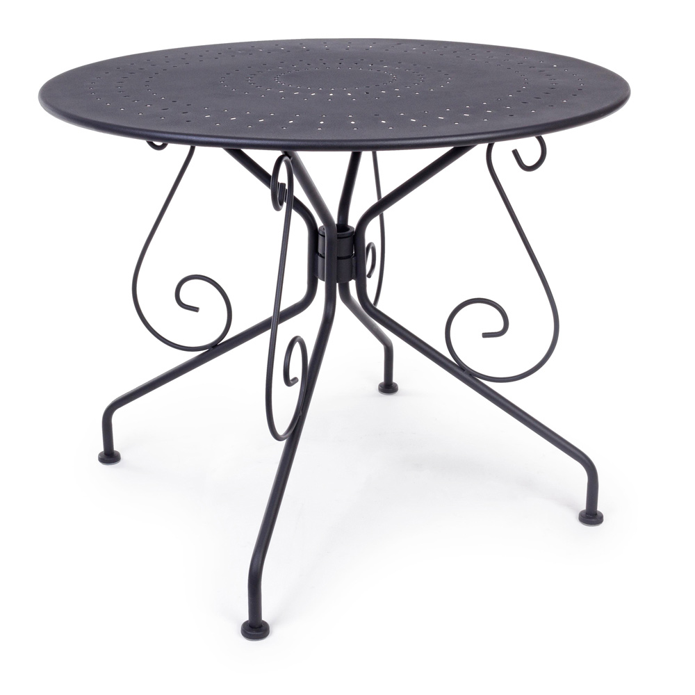 Round table for outdoor Shabby Chich style made of painted steel and available in two different sizes.