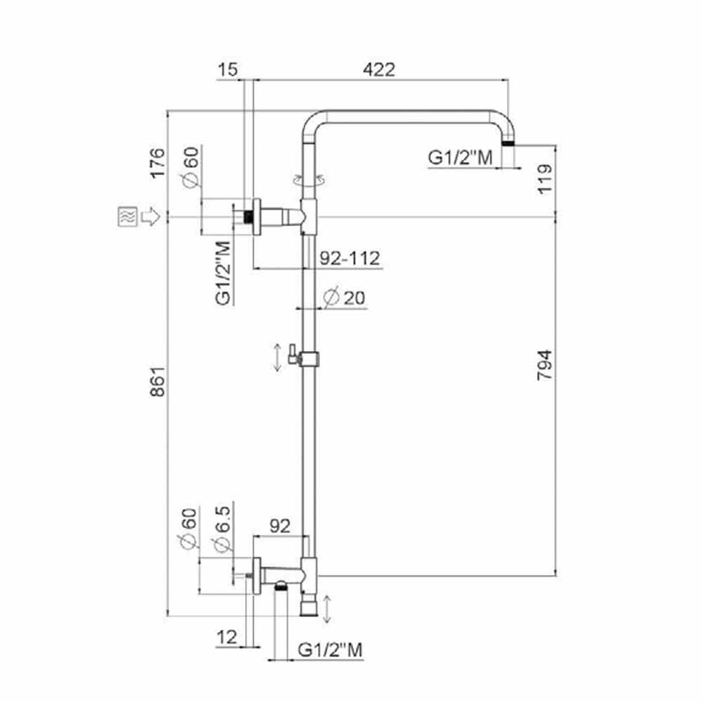 Shower column in chromed brass with steel shower head Made in Italy - Daino