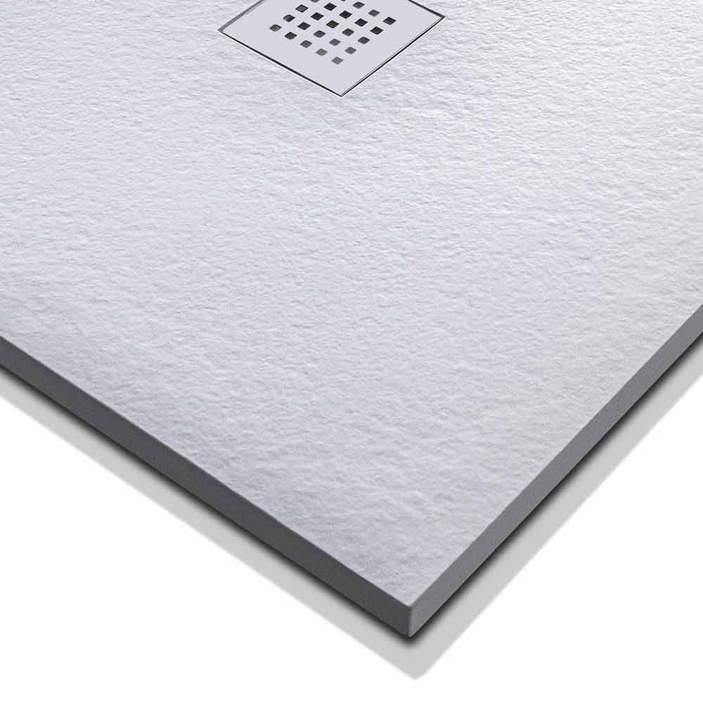 Modern 120x70 shower tray in stone effect resin with steel grid.