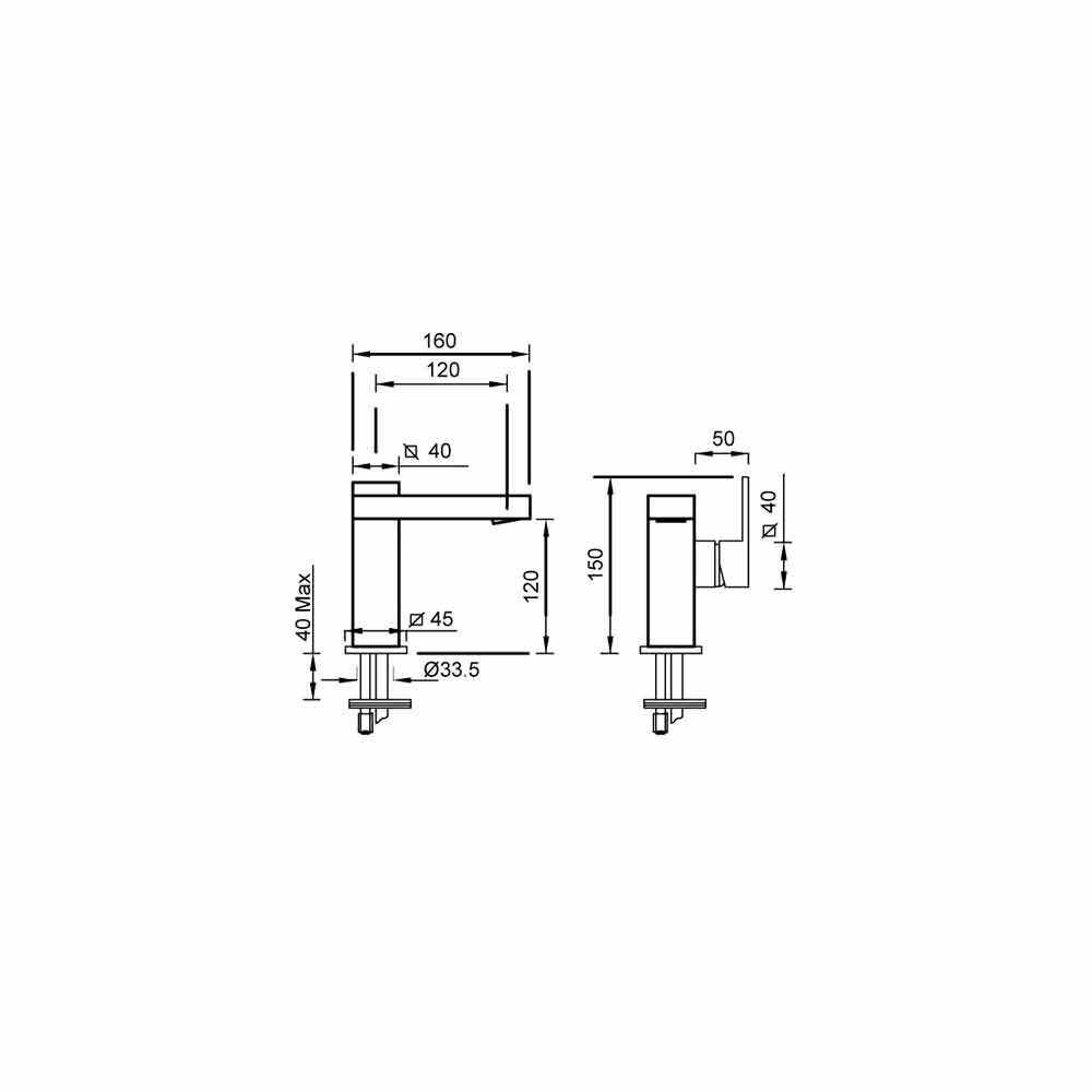 Washbasin mixer with side lever without waste in brass Made in Italy.