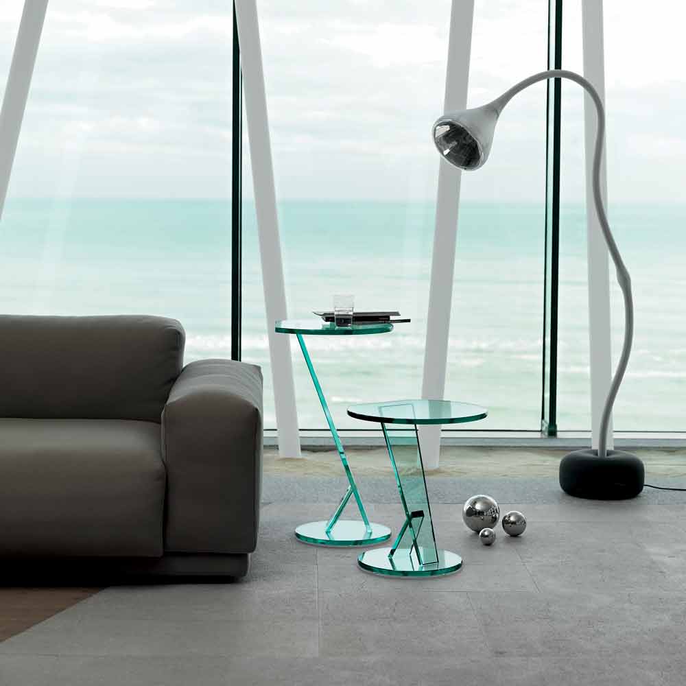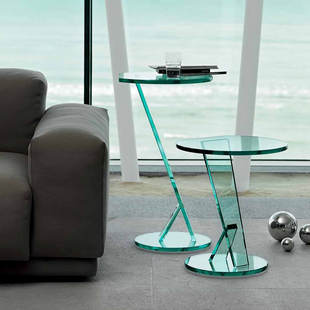Sofa side table in extra-clear glass of 2 heights, high quality made in Italy.