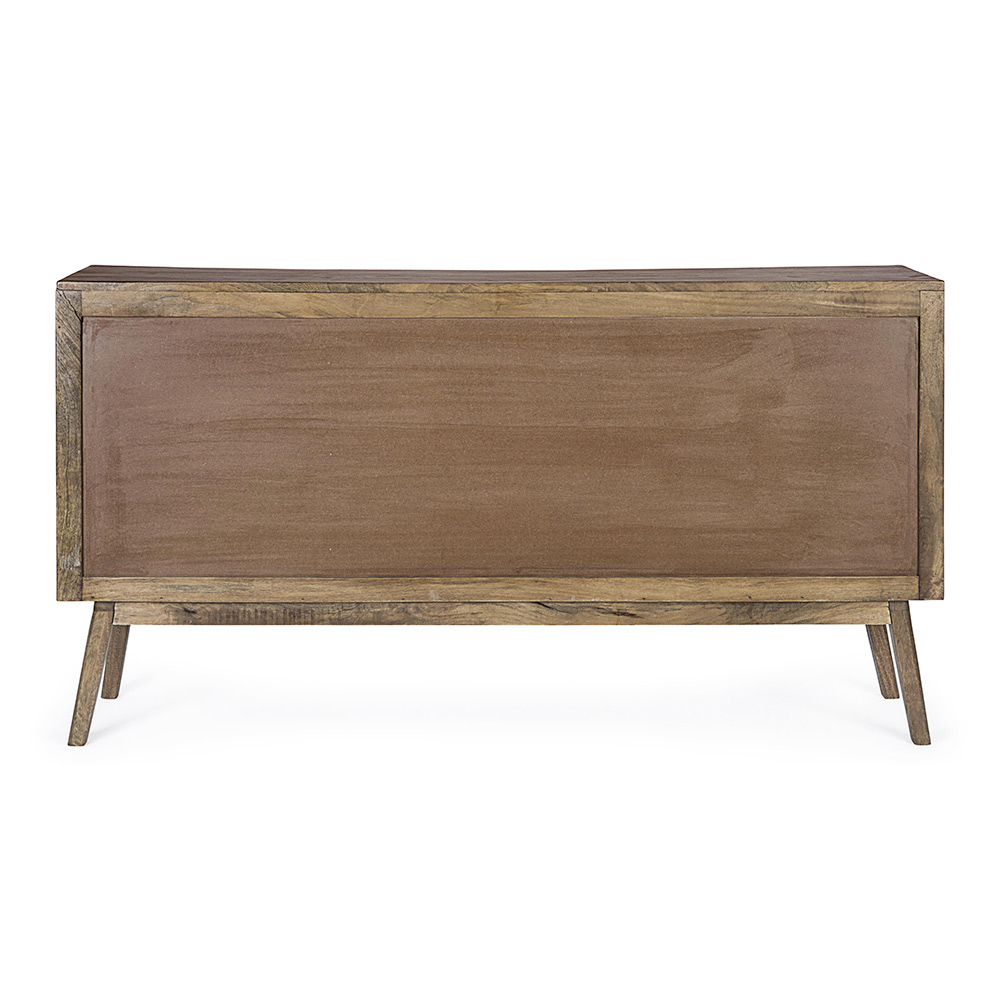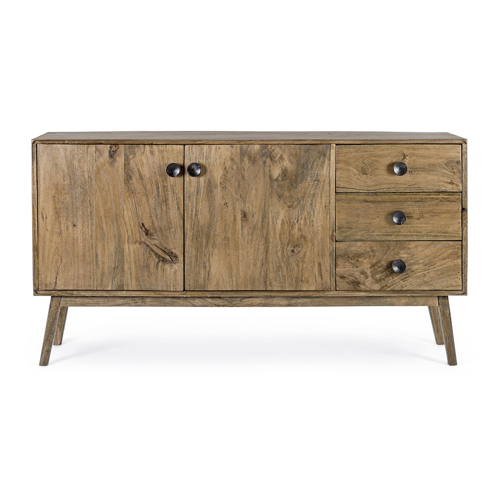 This design sideboard for the lounge has a structure and legs to be assembled in mango wood with a water-based finish and back in MDF.