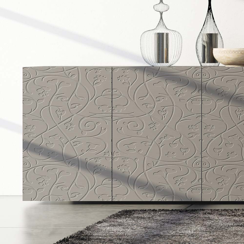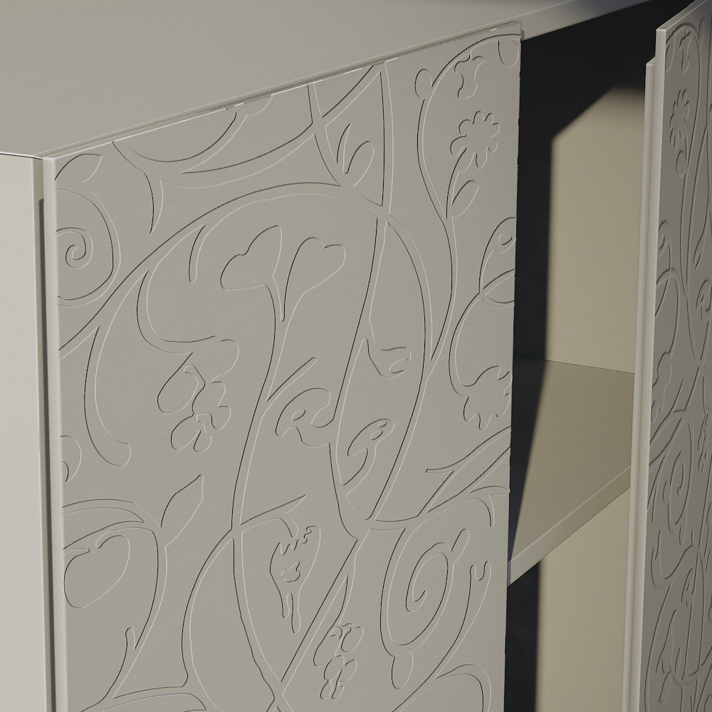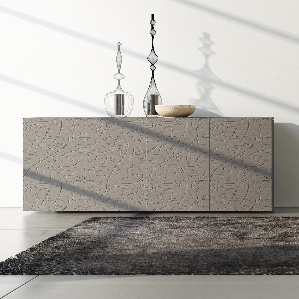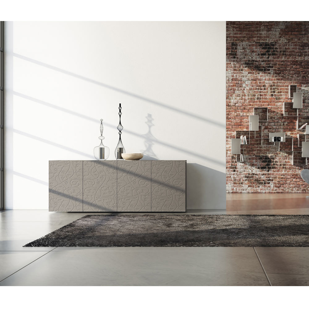 Sideboard 4 Doors in Mud Lacquered Mdf with Bas-relief Made in Italy - Lolla