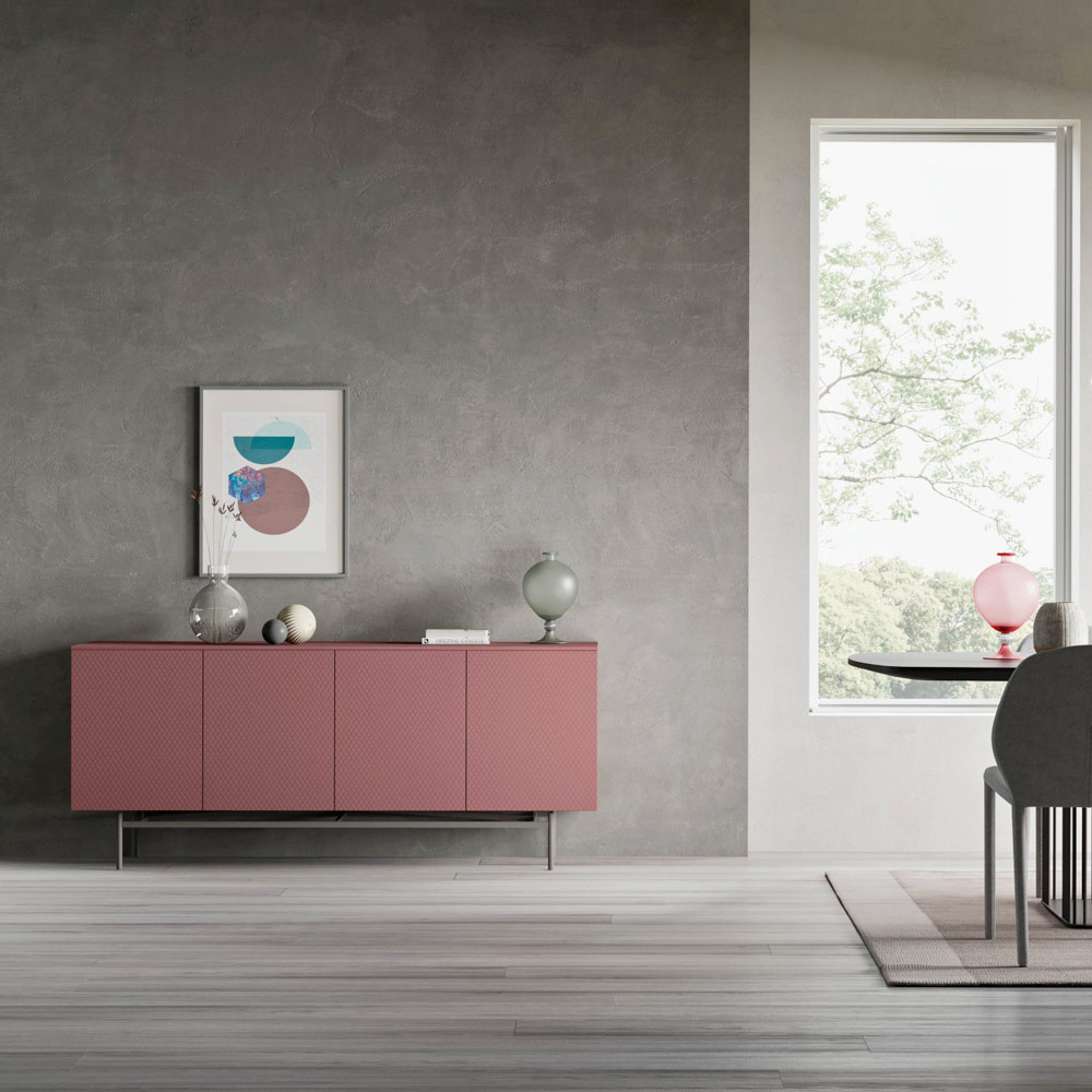 sideboard for the living room has a structure made of matt minio colour lacquer, with