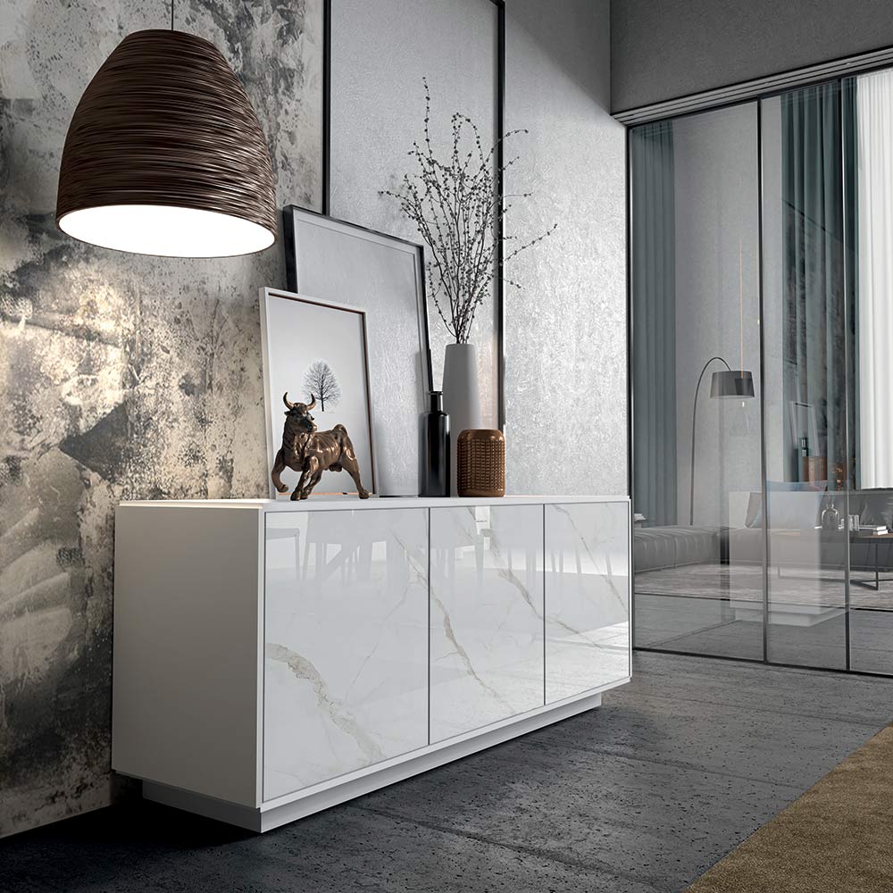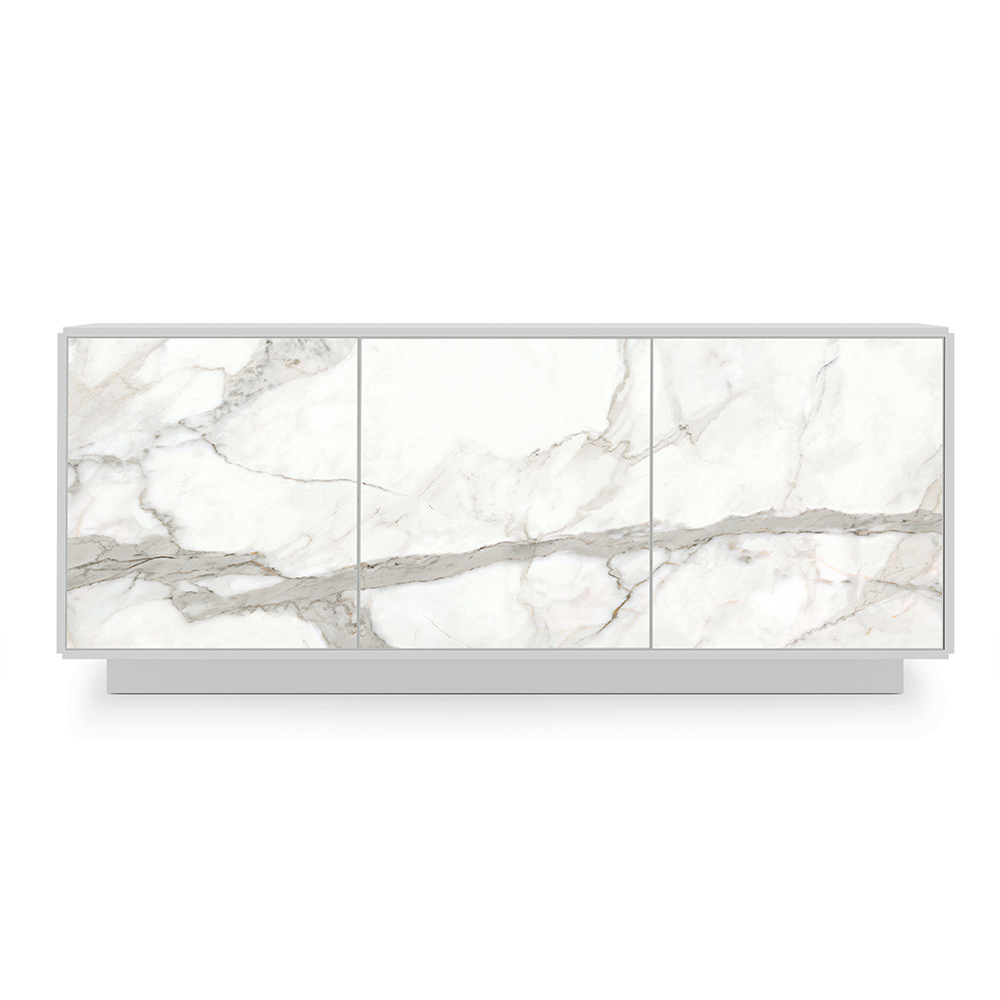 Living room sideboard in lacquered wood with ceramic doors, high quality Made in Italy.