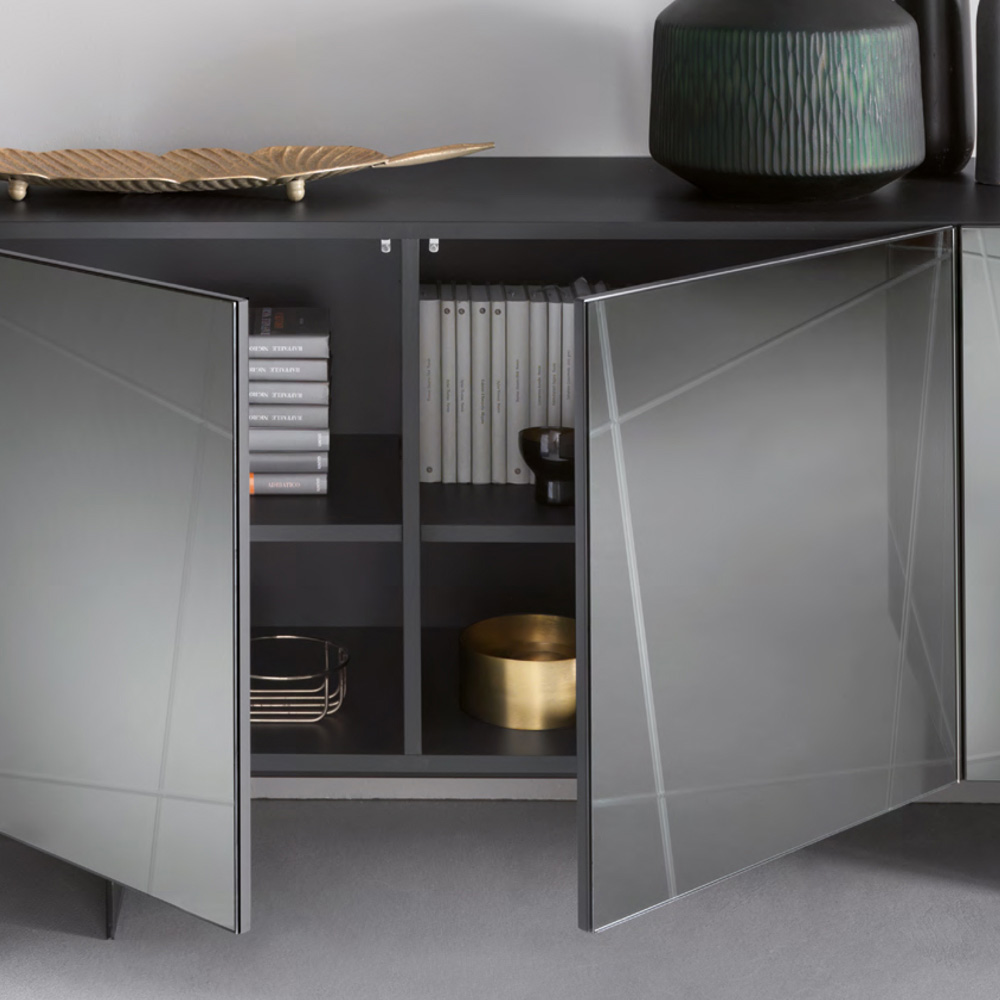 Modern sideboard in melamine with doors covered in Made in Italy mirror.