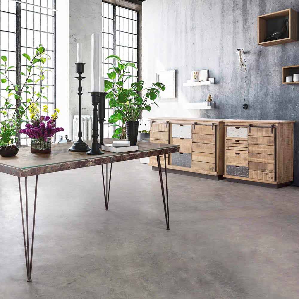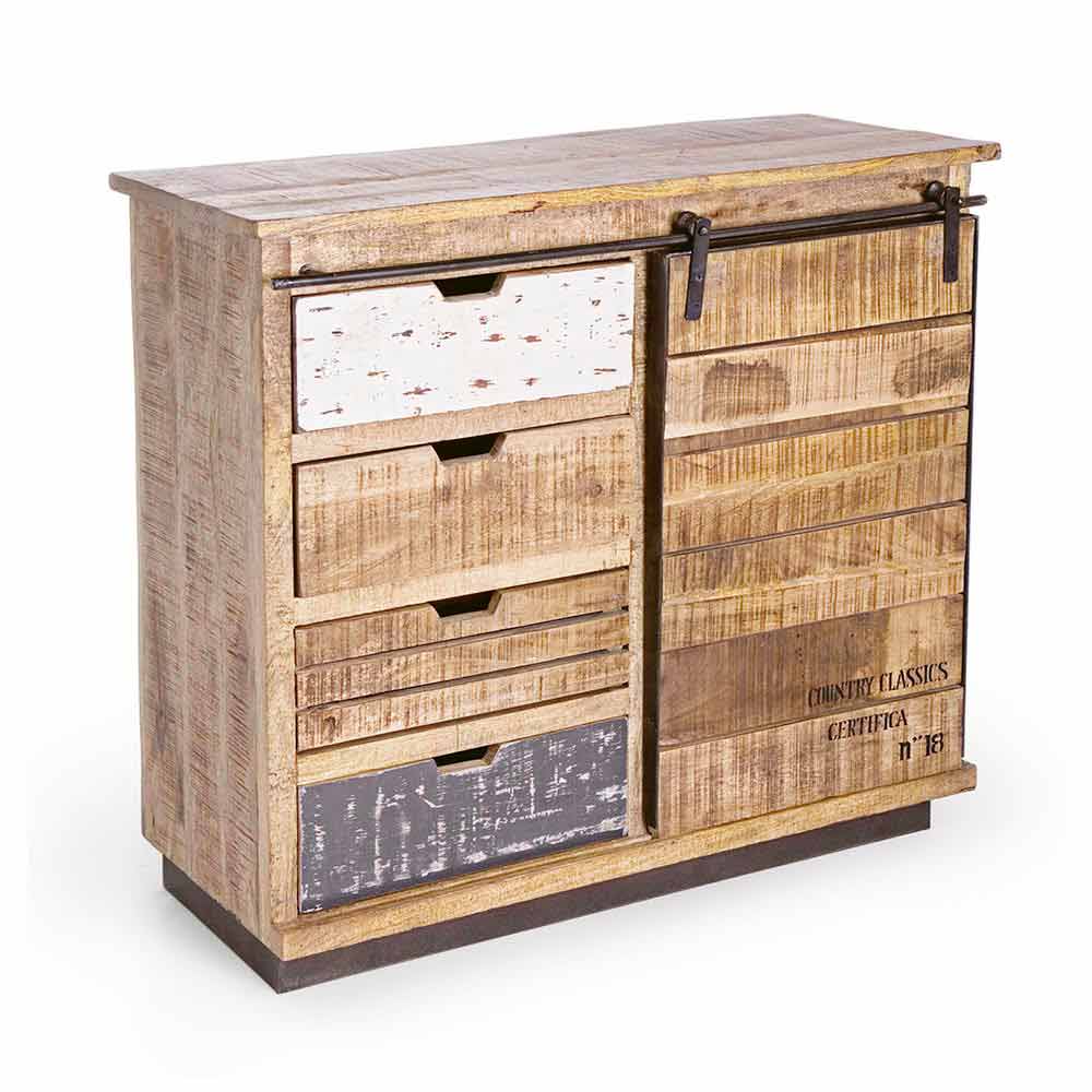 Sideboard in Wood and Steel with Door and 4 Drawers Industrial Style - Renza