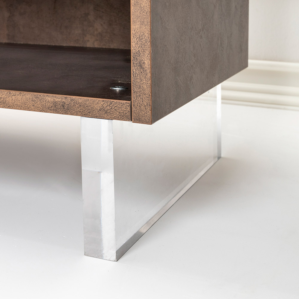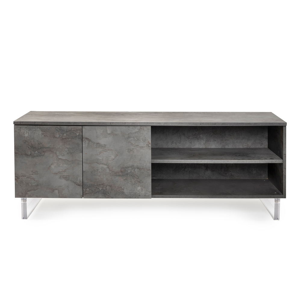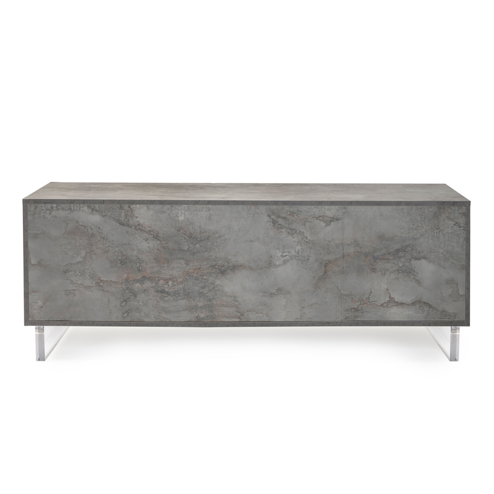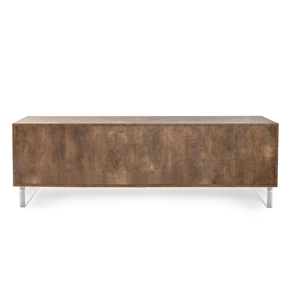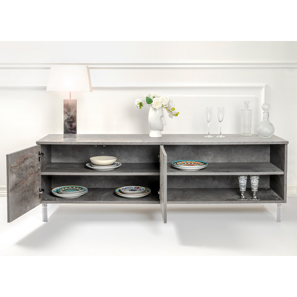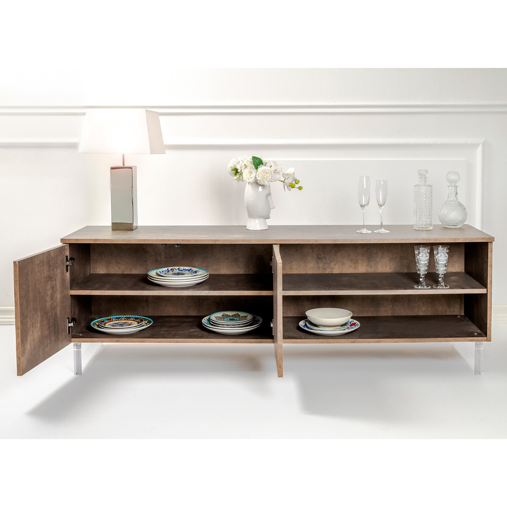 The sideboard, with its plexiglass feet, seems to touch the ground, a design detail that adds a touch of modernity and lightness . Inside, tidy shelves await to hold everything you love, from books to everyday items, offering an elegant solution to the need for organization.
