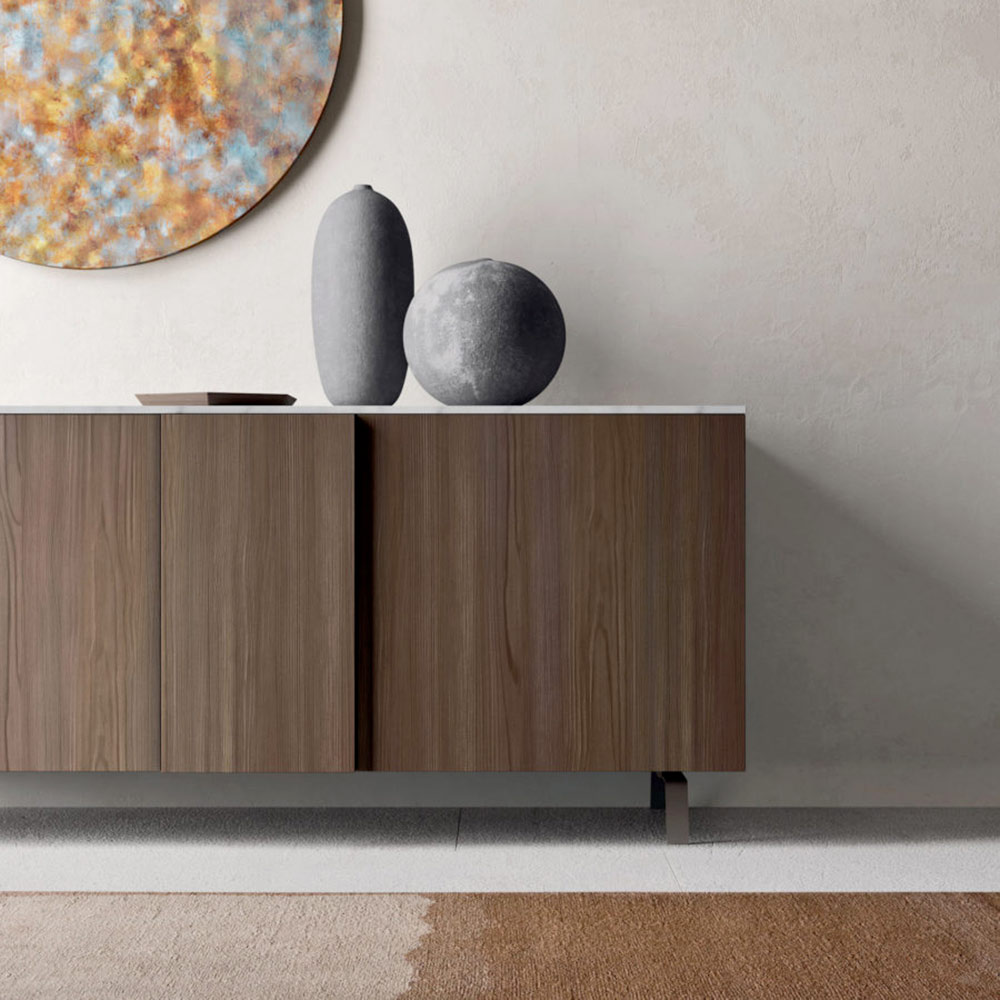 Sideboard for lounge with 2 doors in ecological wood and high quality marble top made in Italy.