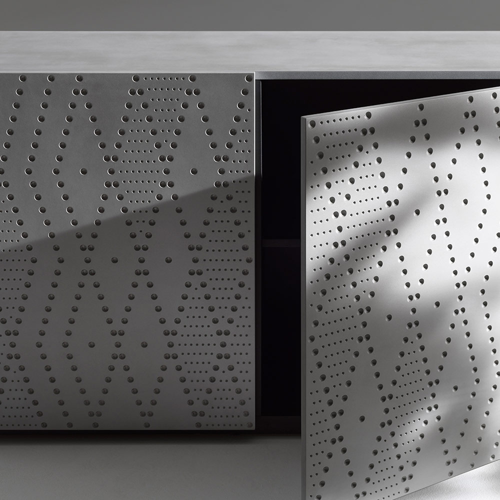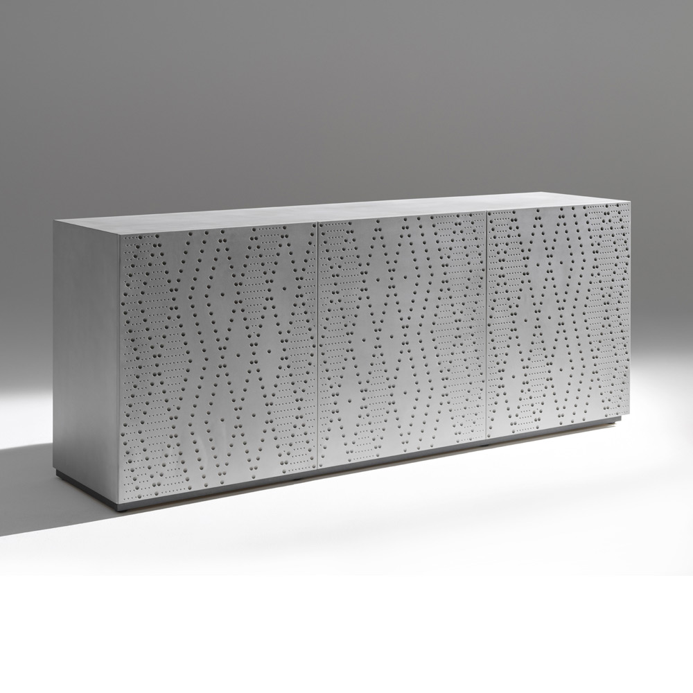 The foundry aluminum decoration , inspired by industrial processes and reinterpreted in a decorative key, makes each sideboard unique and perfect also for contract environments or representative spaces.