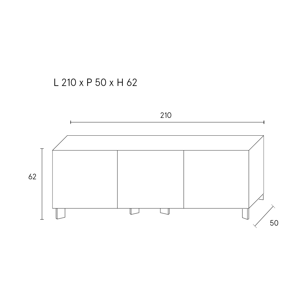 Inside, the sideboard is equipped with 3 shelves , ideal for organizing dishes, books or decorative objects, offering a perfect combination of aesthetics and functionality.