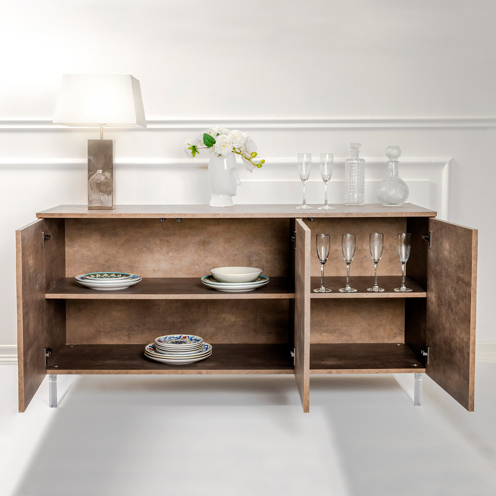 The surface promises to maintain its original brightness, a cornerstone that secures your investment over time. With functionality designed for everyday needs, this sideboard offers generous space to better organise every object, while the elegance of the design makes it an undisputed protagonist in your environment.