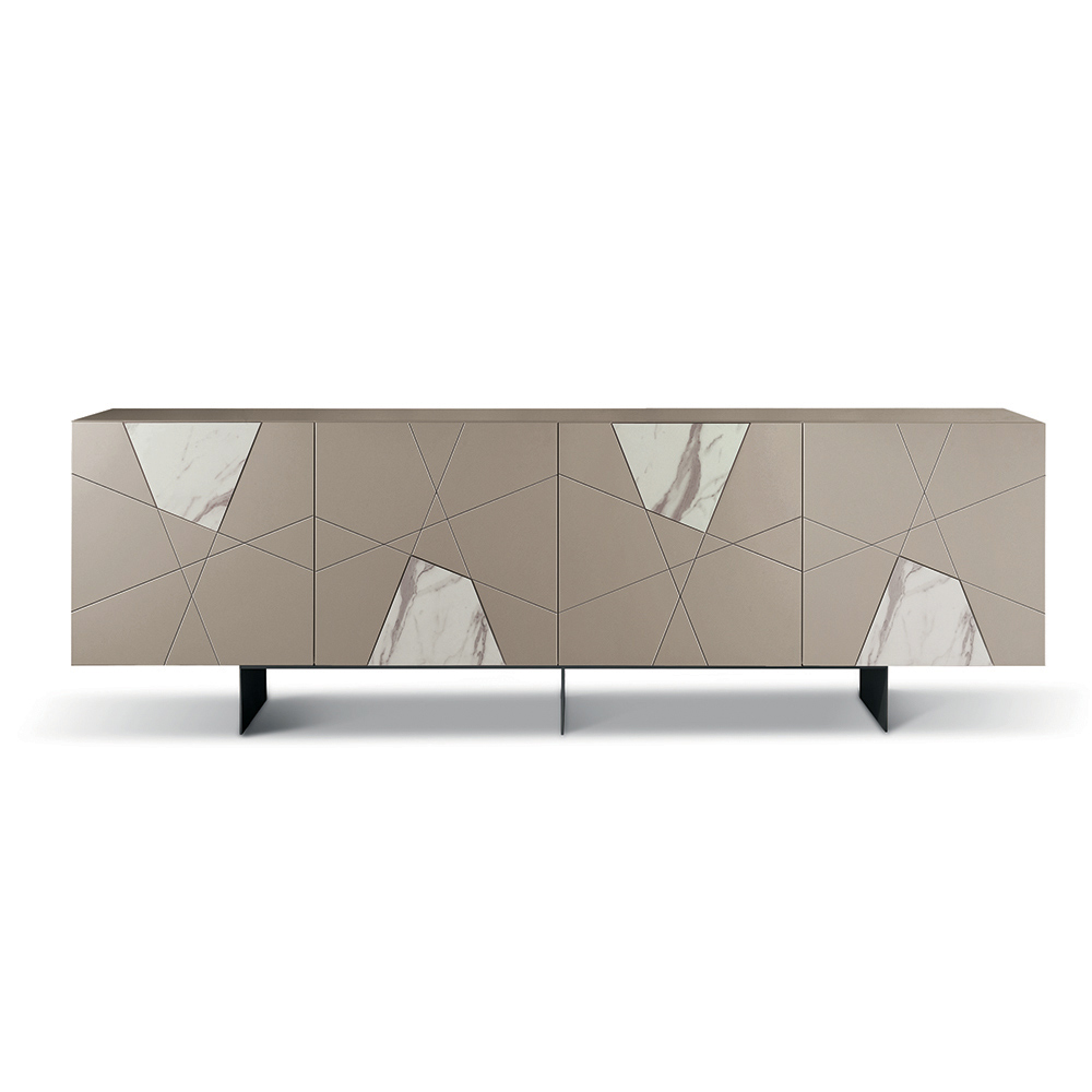 An elegant , Made in Italy designer sideboard , ideal for stylishly furnishing your living room or dining area . Its contemporary design combines geometric lines and contrasting materials, creating a refined and functional furnishing accessory.